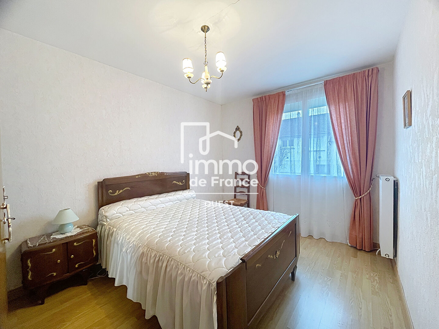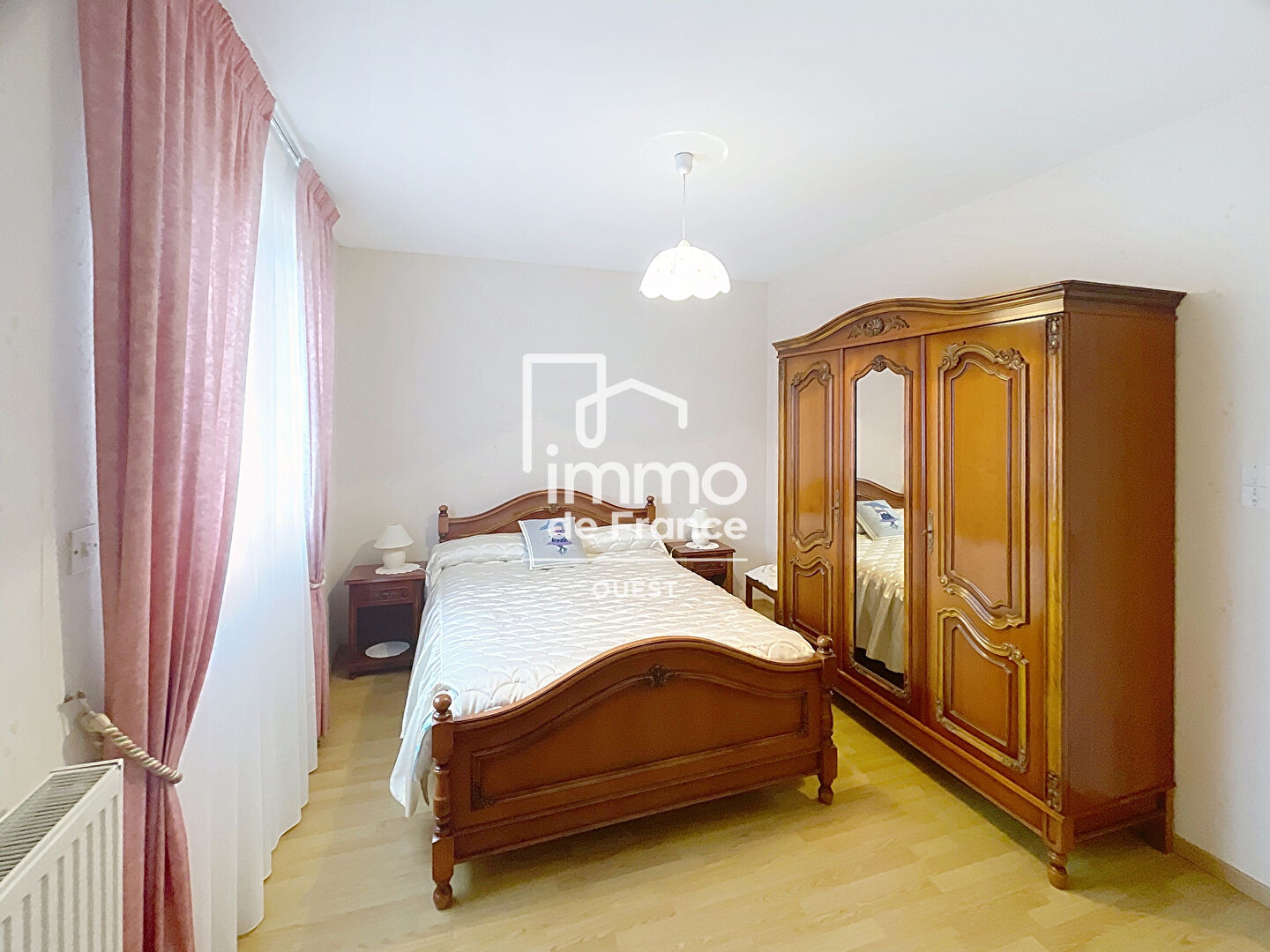 Cette maison vous propose deux chambres spacieuses desservies par un couloir fermé, dont l'une avec un espace placard.