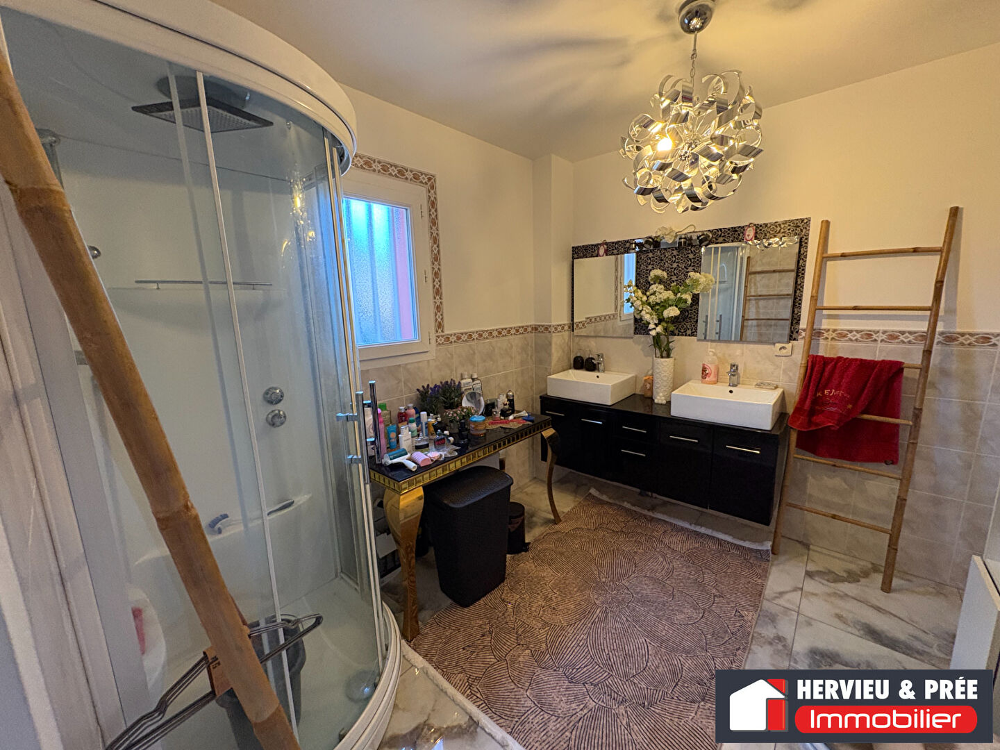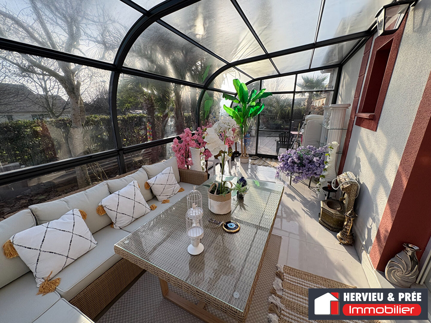 Axe Caen-Ouistreham, très belle maison édifiée en 2003 sur une parcelle d'environ 700 m2 comprenant : entrée, grande pièce de vie ensoleillée avec poêle à bois, cuisine ouverte aménagée-équipée, véranda, 3 chambres dont 1 en RDC et une suite parentale avec sa salle de bains et wc à l'étage, mezzanine (pièce télé).