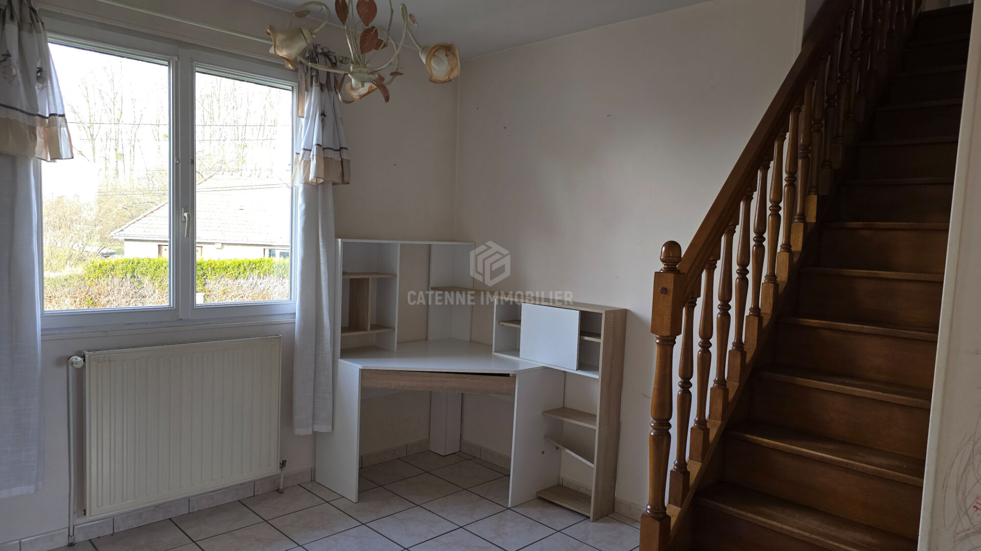 Ce pavillon sur sous-sol total surélevé, auparavant loué, à rénover, offre une entrée sur cuisine aménagée et équipée d'un four, lave-vaisselle, plaque de cuisson et hotte aspirante, un séjour avec cheminée insert, une chambre avec salle d'eau et wc attenant. A l'étage un palier dessert deux chambres supplémentaires.