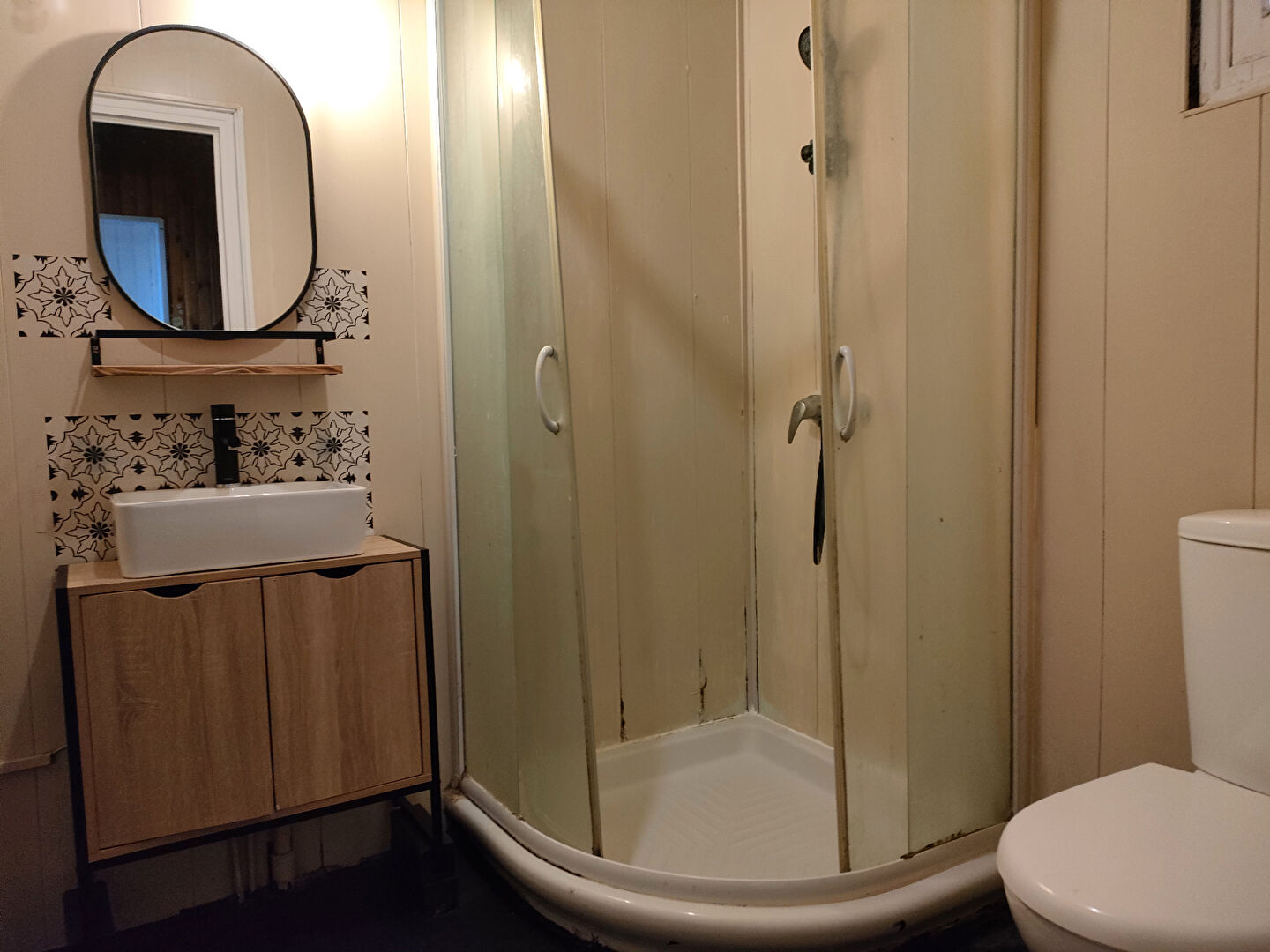 PETIT PRIX - Maison de ville comprenant : pièce principale avec coin -cuisine, salle de douche avec wc. Au 1er étage : 2 chambres . Au 2è étage : une pièce palière bureau et une chambre. JARDIN.