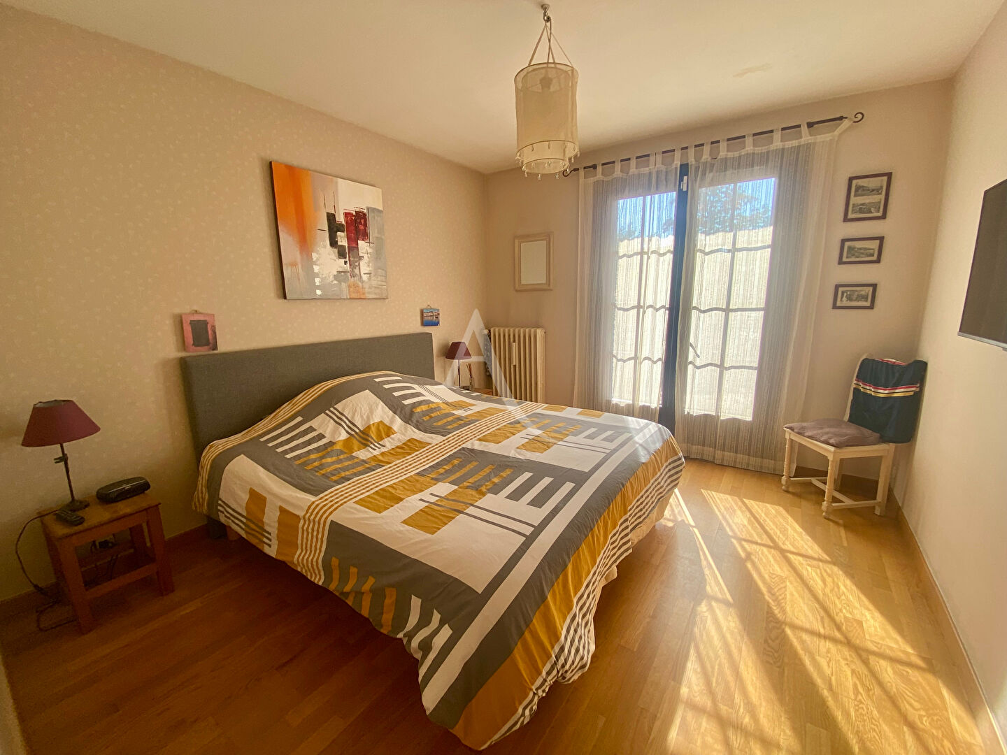 L'entrée avec rangement donne sur un espace desservant une cuisine entièrement aménagée et équipée dotée d'un piano de cuisson avec accès direct à la première terrasse. L'espace de vie traversant agrémenté d'une cheminée se prolonge sur la seconde terrasse, 3 chambres spacieuses et lumineuses, 1 salle de bains + douche.