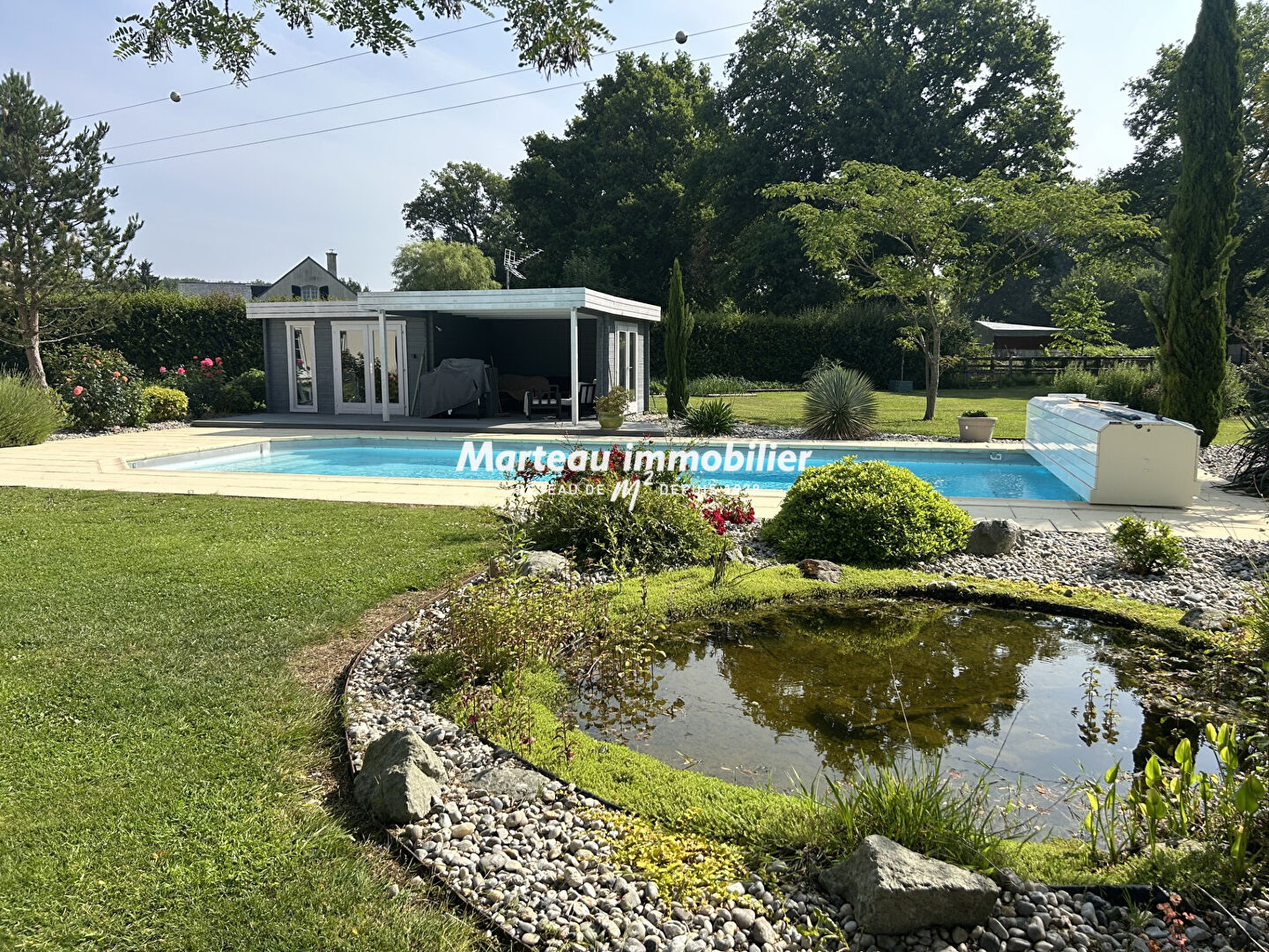 Pour les extérieurs vous bénéficierez, au dela du très beau terrain arboré, d'une grande piscine de 11,50m X 5m, chauffée par pompe à chaleur avec pool-house de 20m².