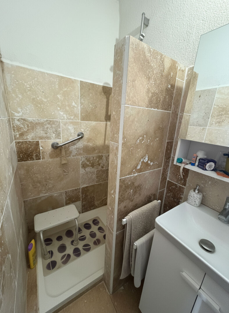 Une chambre avec placard et une salle d'eau avec WC au 1er étage.