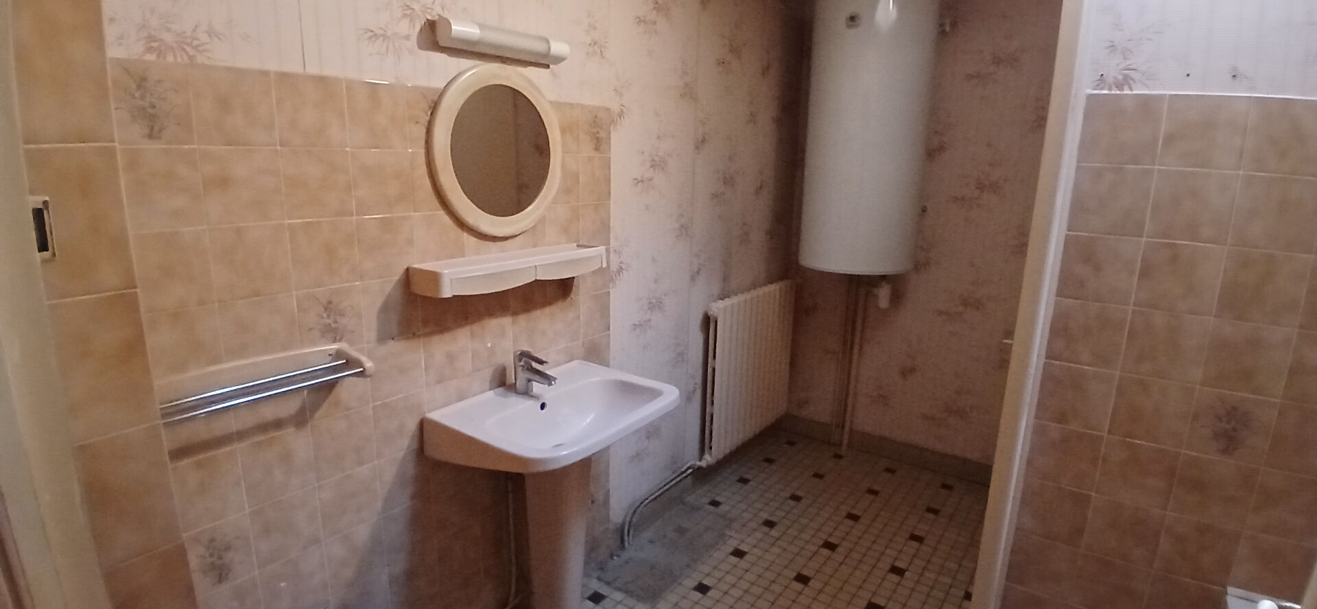 À l'étage, vous trouverez 3 chambres, dont une spacieuse de 16 m², ainsi qu'une salle de bain avec wc à rafraîchir.