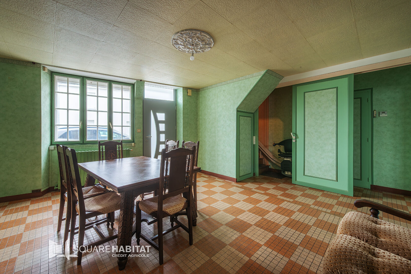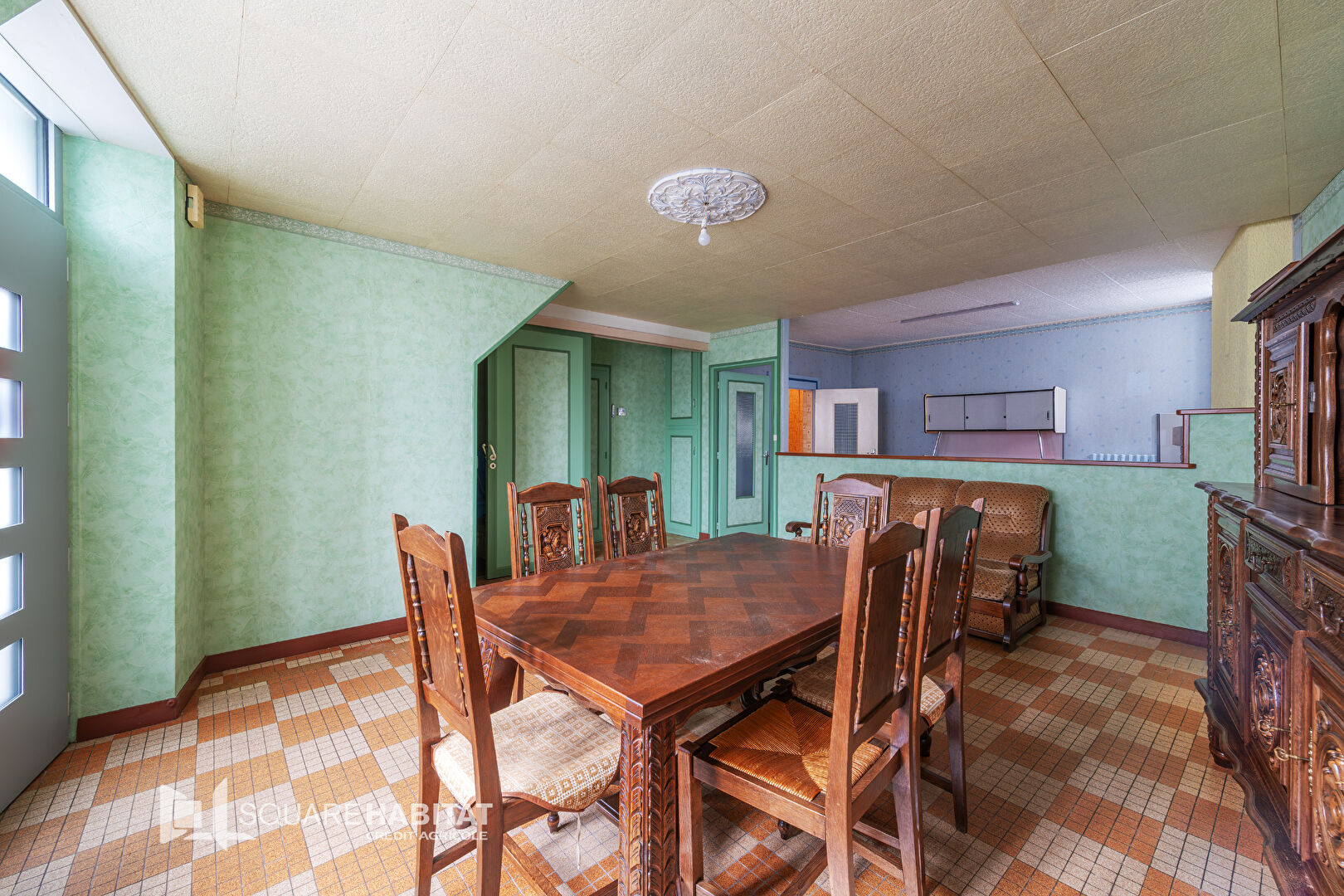 Exclusivité Square Habitat Châteaubriant. Découvrez cette maison de 95 m² environ située en plein coeur du bourg, offrant un grand salon séjour de 37 m² environ convivial au rez-de-chaussée, une cuisine, un cellier et wc.