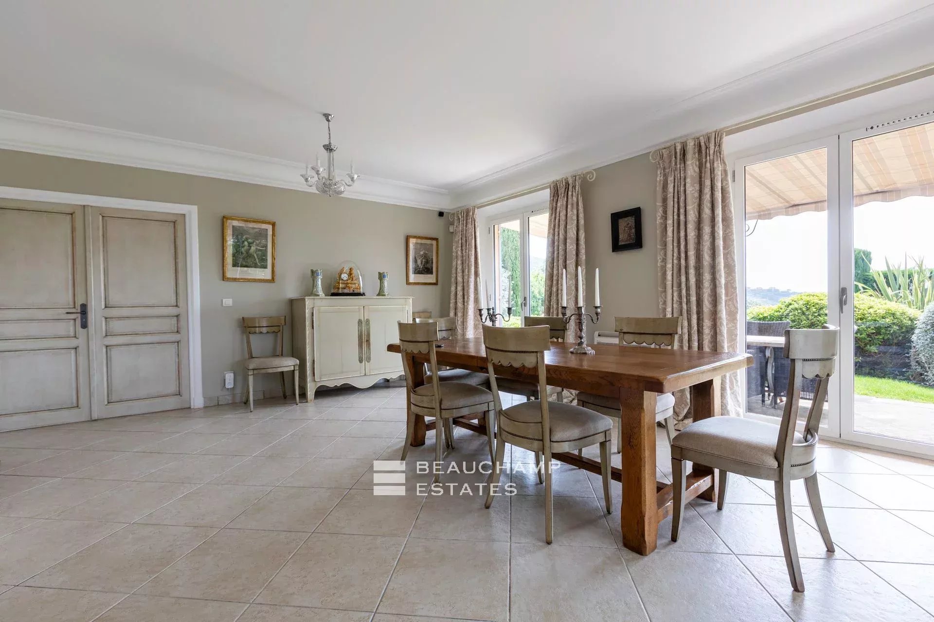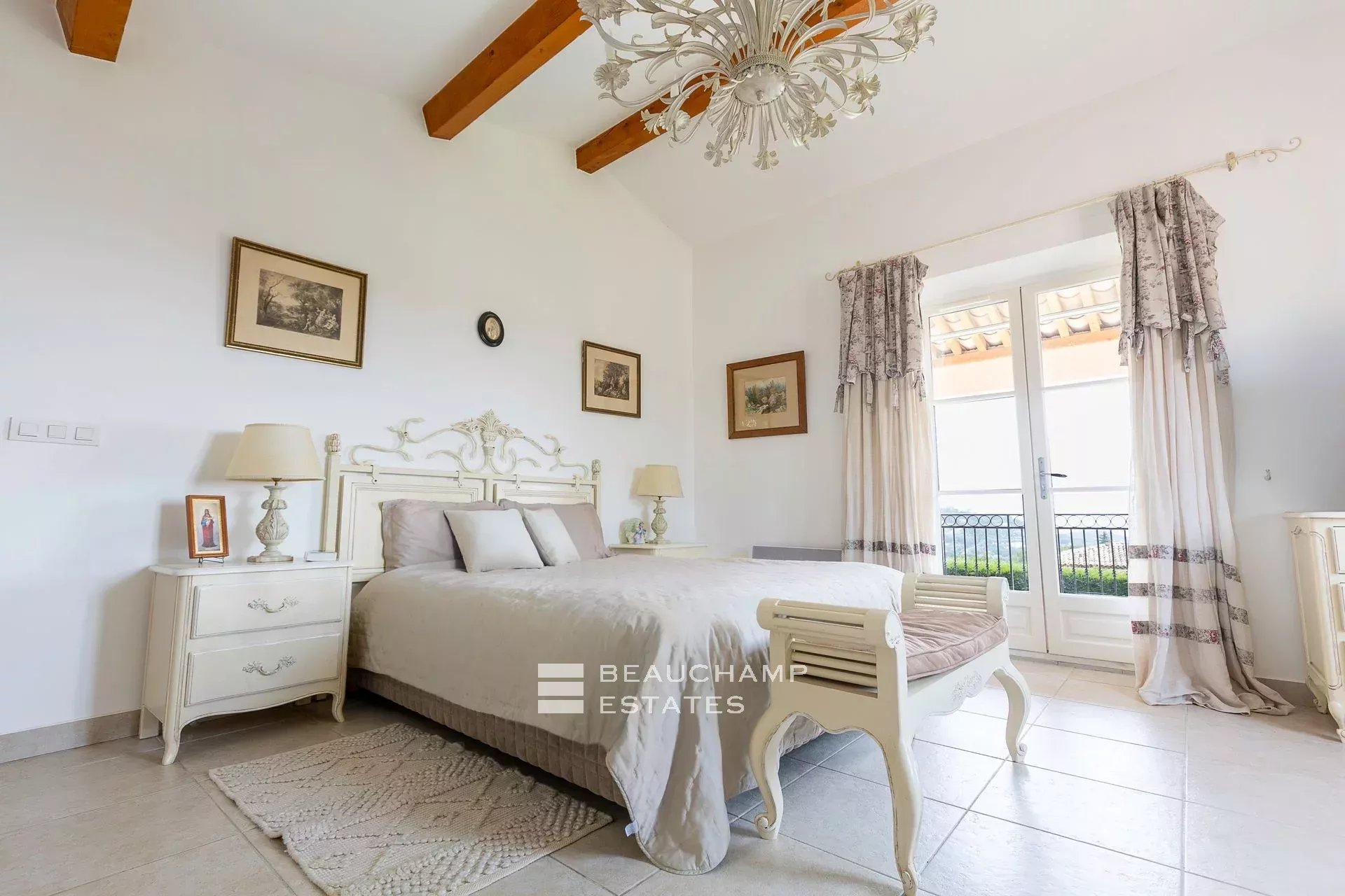 Nichée sur les hauteurs prisées de Grimaud, cette élégante villa de 219 m2 d’inspiration provençale offre un cadre de vie exceptionnel, sublimé par une vue mer panoramique et une atmosphère résolument paisible. Baignée de lumière, la propriété séduit par ses volumes généreux et son environnement verdoyant, à l’abri de toute nuisance.