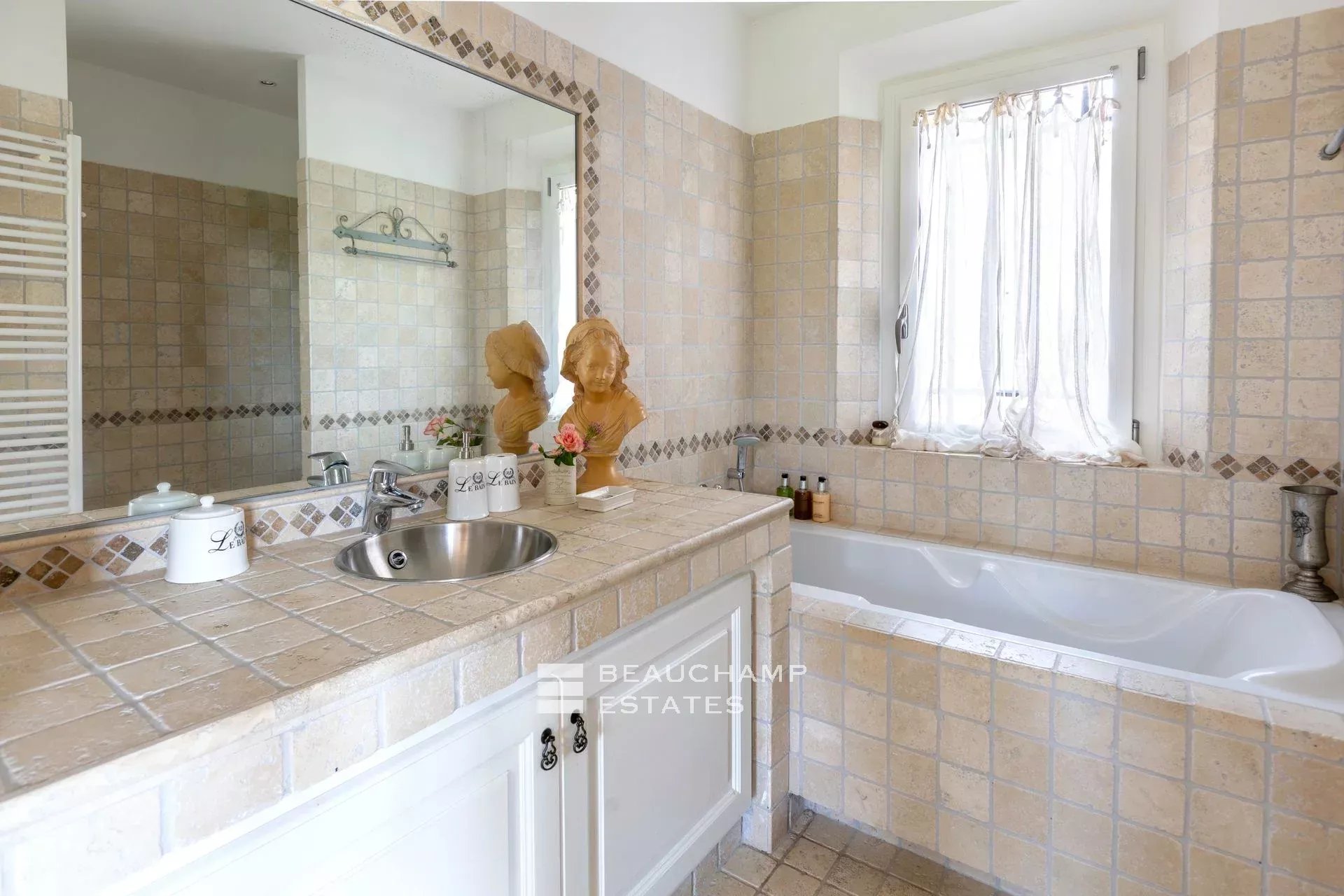 À l’extérieur, de vastes terrasses ensoleillées invitent à la détente et aux moments de partage, autour de la piscine privée, véritable atout de la propriété. Idéalement située à seulement quelques minutes de Saint-Tropez et des plus belles plages du Golfe, cette villa constitue un véritable havre de paix, alliant élégance, confort et douceur de vivre entre mer et collines.