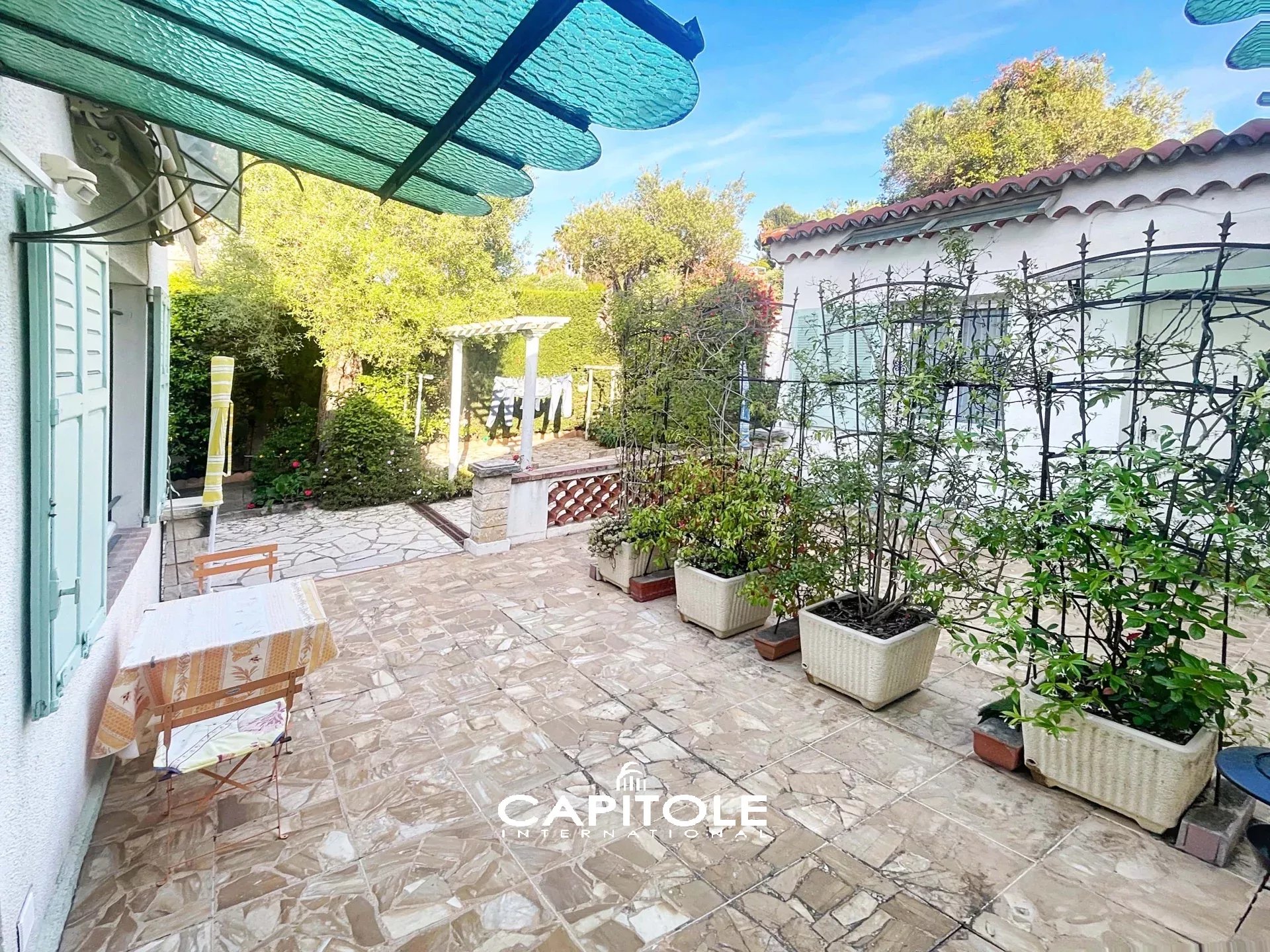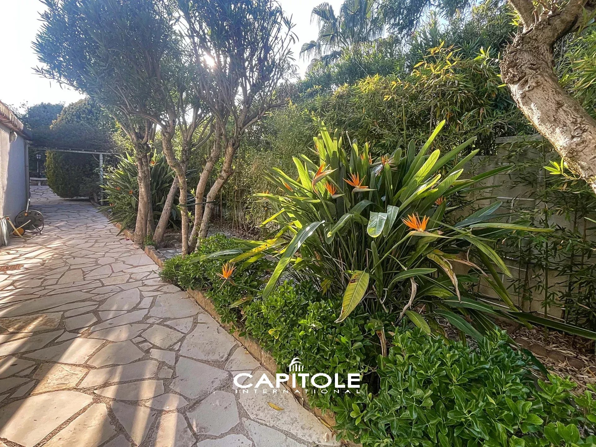 Cap d'Antibes - Idéalement située au cœur d’un domaine privé et sécurisé, à quelques minutes à pied de la mer et des plages, cette charmante villa de plain-pied bénéficie d’un emplacement recherché sur le versant ouest du Cap d’Antibes.