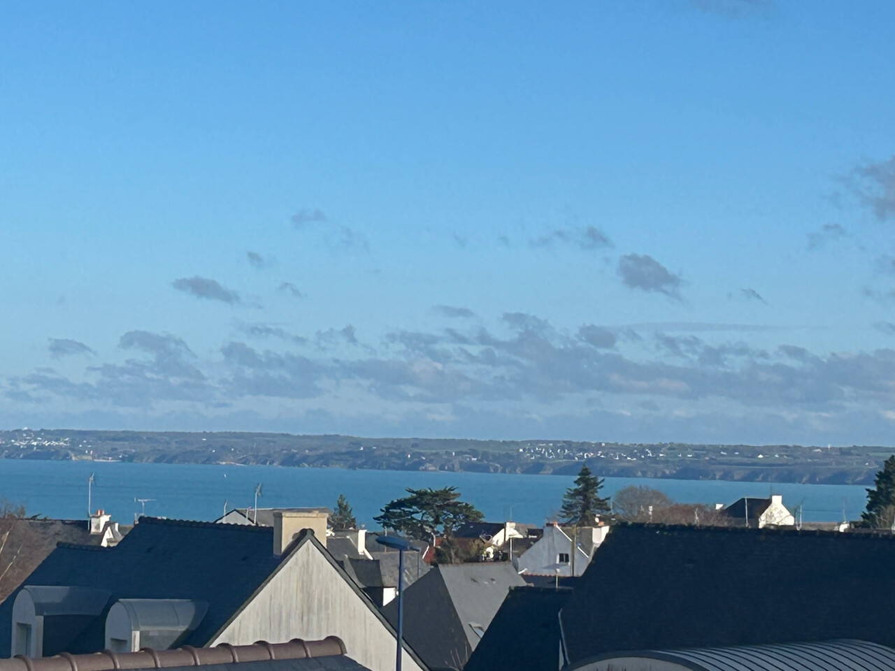 À l’étage, un joli dégagement agrémenté de rangements vient desservir deux chambres une salle d'eau ainsi qu'un WC. On y retrouve également un accès nous menant au toit terrasse, offrant une vue dégagée avec un agréable aperçu sur la mer.