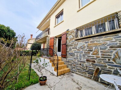 Dans un quartier agréable de Prades, proche des impôts, une villa 3 faces de bonne construction (année 70) de type F4 (3 chambres avec possibilité d'une 4ème) sur rdc + 1 niveau avec balcon, terrasse, garage spacieux (28m²) et une grand pièce de 35m² environ à aménager au rdc sur un terrain clos et arboré de 356m².