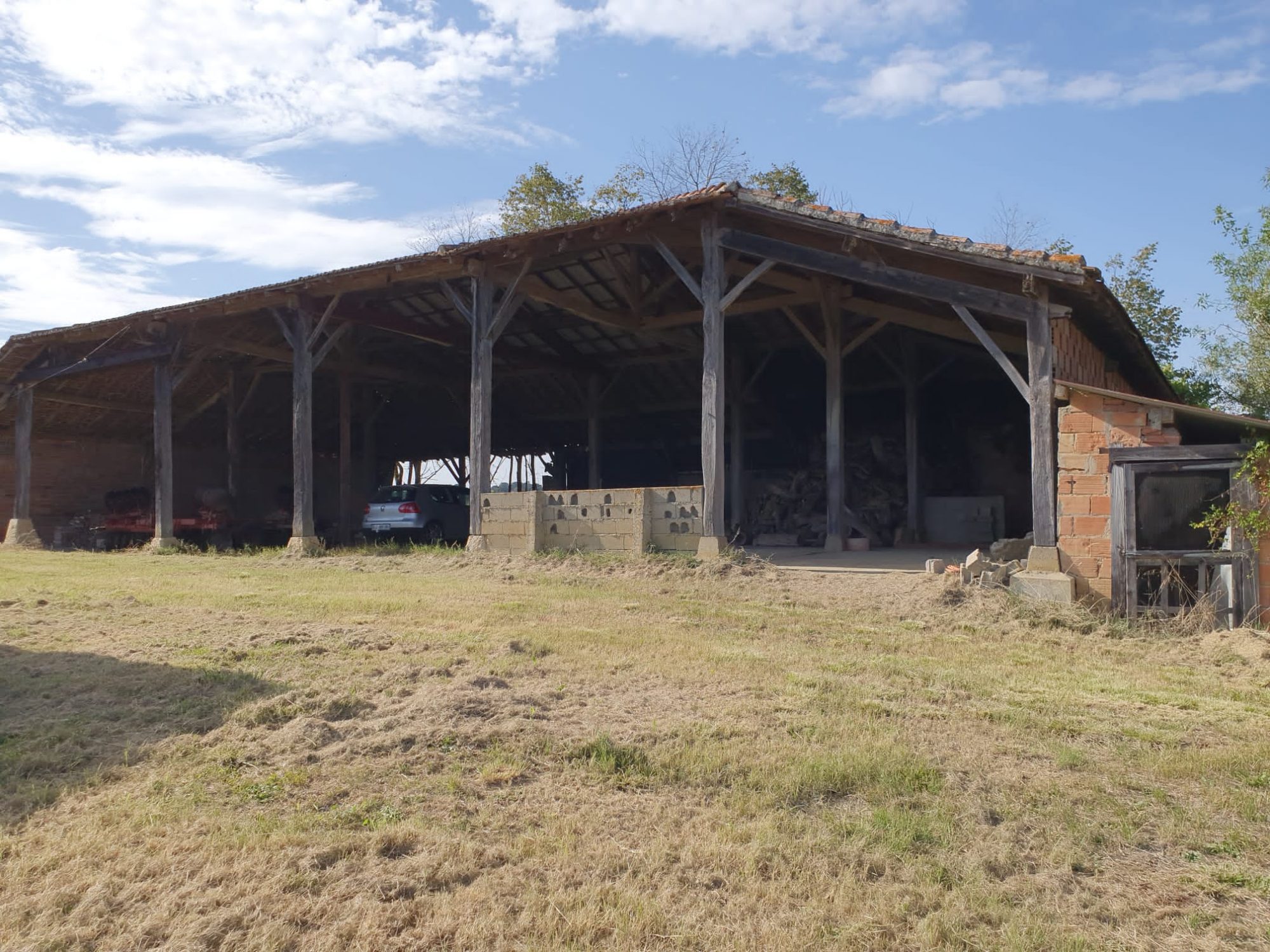 Grande grange de 375 m² (15 × 25 m) pouvant être transformée en écurie ou lieu de réception (mariages, baptêmes?)