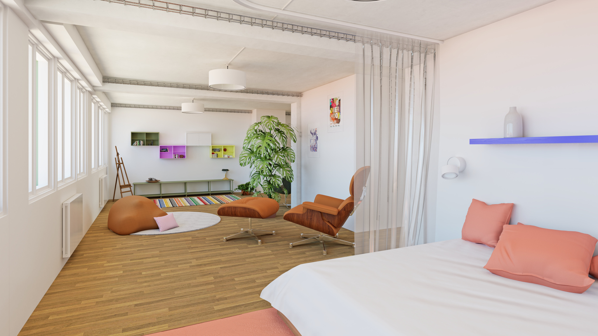 L'aménagement intérieur offre des pièces avec de grands volumes, baignés de lumière et avec des matériaux de qualité.