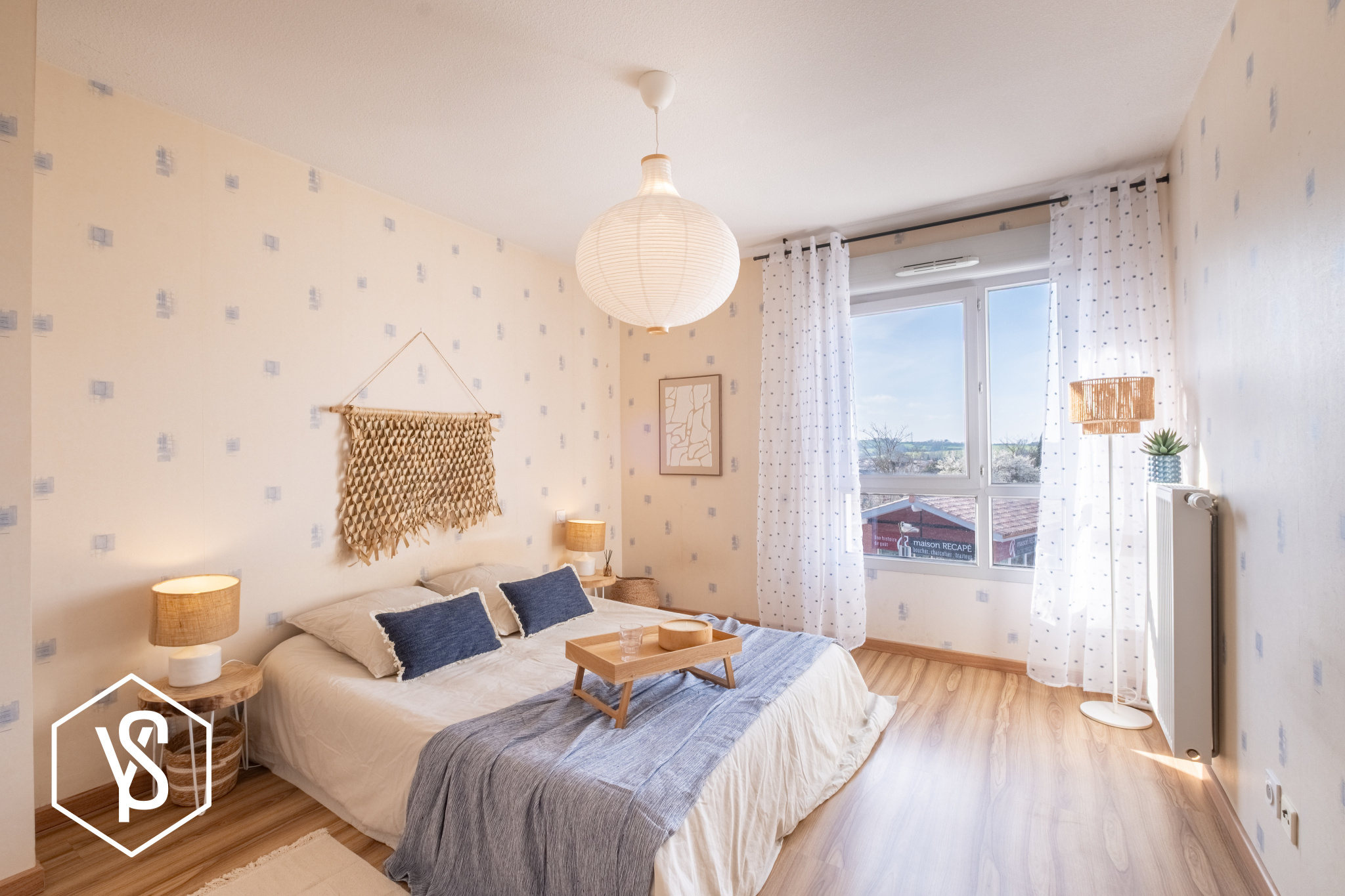 Pièce de vie de 24m2, chambre séparée de 12,30m2, entrée, salle d'eau/WC et balcon de 5m2.