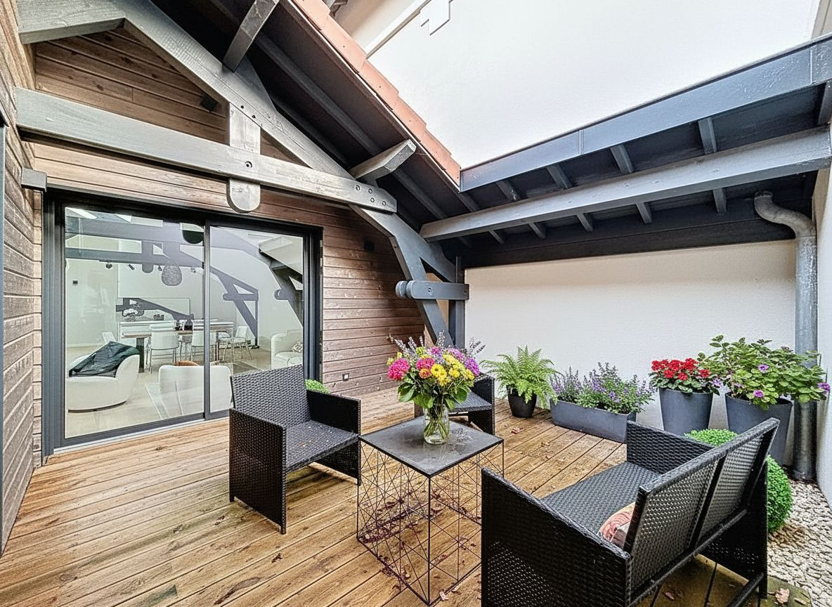 À l'extérieur, la terrasse (type Tropézienne), véritable havre de paix, prolonge l'espace de vie et invite à la détente. Un lieu privilégié pour savourer les soirées d'été, recevoir ou simplement contempler le ciel étoilé en toute quiétude.