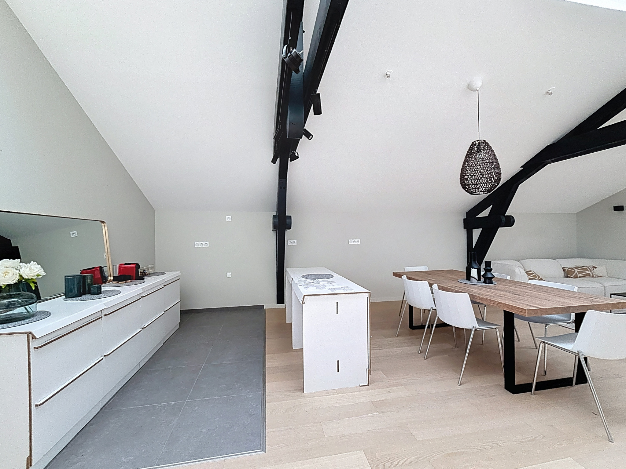 Dès l'entrée, le charme opère. Le hall vous conduit vers une somptueuse pièce de vie, sublimée par de généreux volumes et baignée de lumière naturelle grâce à de grands velux, créant une atmosphère chaleureuse et résolument contemporaine. La cuisine ouverte, s'intègre harmonieusement à l'espace de réception. Idéale pour recevoir, elle invite à partager des moments conviviaux tout en profitant d'une vue dégagée et d'une luminosité exceptionnelle.