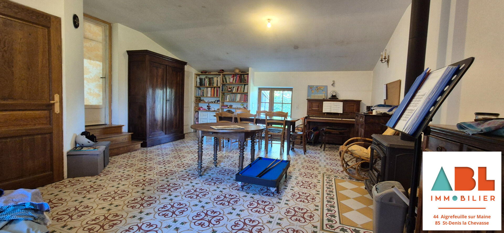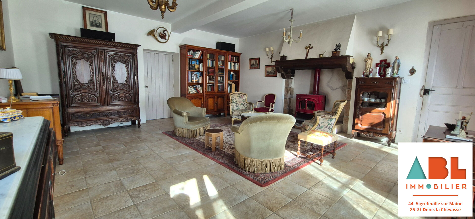 - d'un salon chaleureux de 32 m² avec poêle à bois,