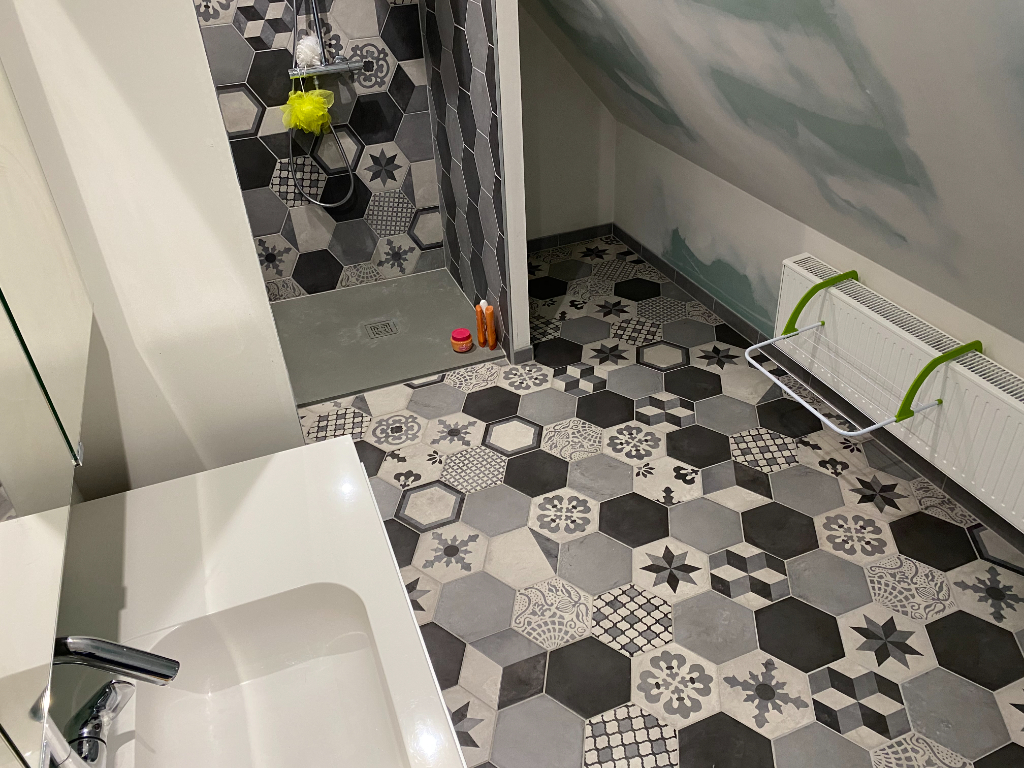 L'étage comprend, d'un coté une suite comprenant chambre, dressing, bureau et salle d'eau avec toilette, idéal pour un adolescent, de l'autre côté, un pallier desservant 2 grandes chambres ainsi qu'une salle d'eau avec toilette.
