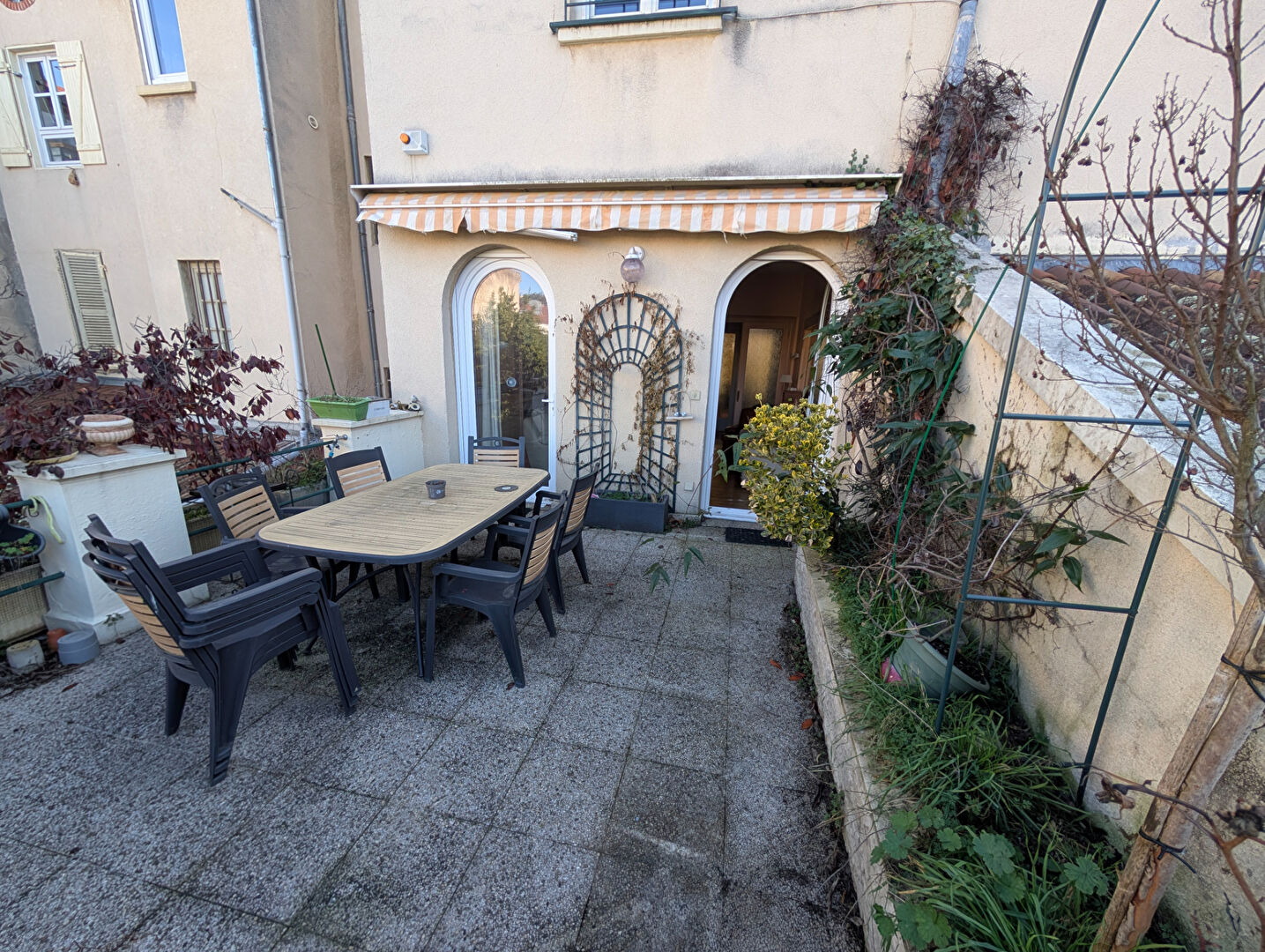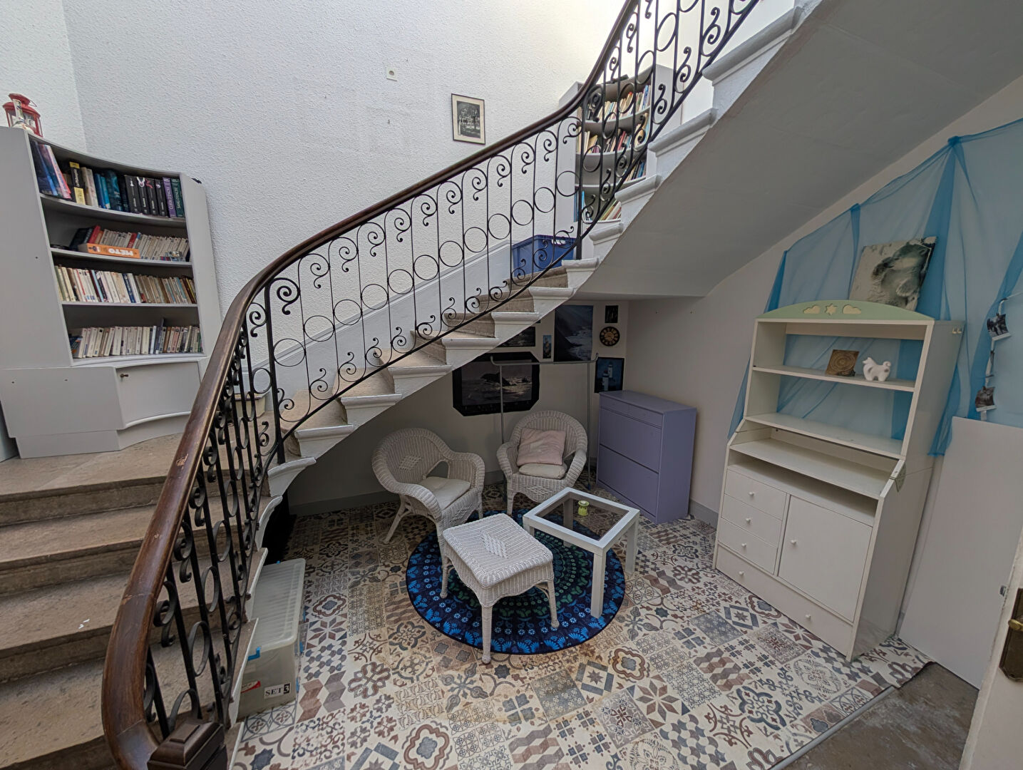 VIENNE - 38200 - Quartier Sous Préfecture - A 700 mètres de la Gare - Au pied du Bus - Dans petite Copropriété - Immeuble Bourgeois - Bel APPARTEMENT de type 6 - 197 M² habitables ""Carrez"" au 1er et 2ème étage - Vaste Hall central sur parquet droit massif - Salon de réception au soleil levant avec deux fenêtres, salle à manger avec deux fenêtres, et salon TV/Bibliothèque à l'ouest avec porte fenêtre sur terrasse - l'ensemble est doté de Cheminées en Marbres de décoration, de Moulures et de Hauts Plafonds - Cuisine fermée et buanderie attenante - 2 grandes chambres avec pièce d'eau et Chambre indépendante avec pièce d'eau au 2ème étage - ""Jardin d'hiver"" sous vitraux et belle montée d'escalier en pierre - Terrasse Tropézienne de 17 M² au Calme et au soleil couchant - Jolie Cave sur gravier - Copropriété comprenant 5 Lots Principaux - Charges Annuelles courantes de copropriété : 2000 Euros -
