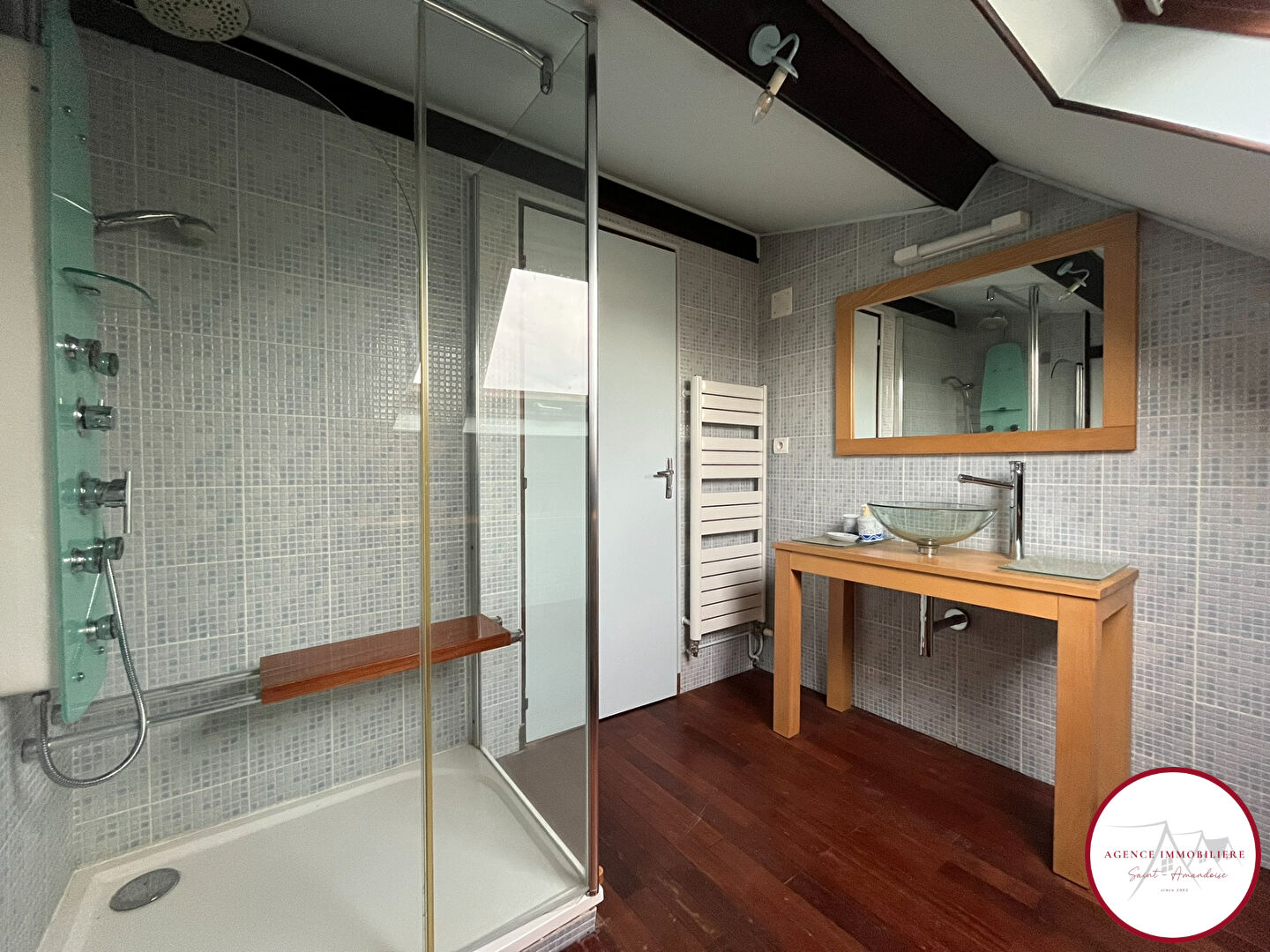 À l'étage, un palier distribue une chambre avec salle d'eau privative, deux chambres supplémentaires, un WC indépendant ainsi que deux greniers offrant des espaces de rangement appréciables.