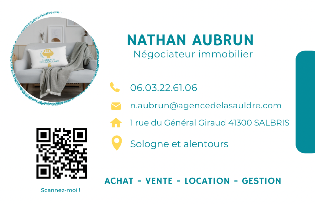 Pour plus de renseignements, votre contact Nathan AUBRUN L'Agence de la Sauldre Tel 0603226106