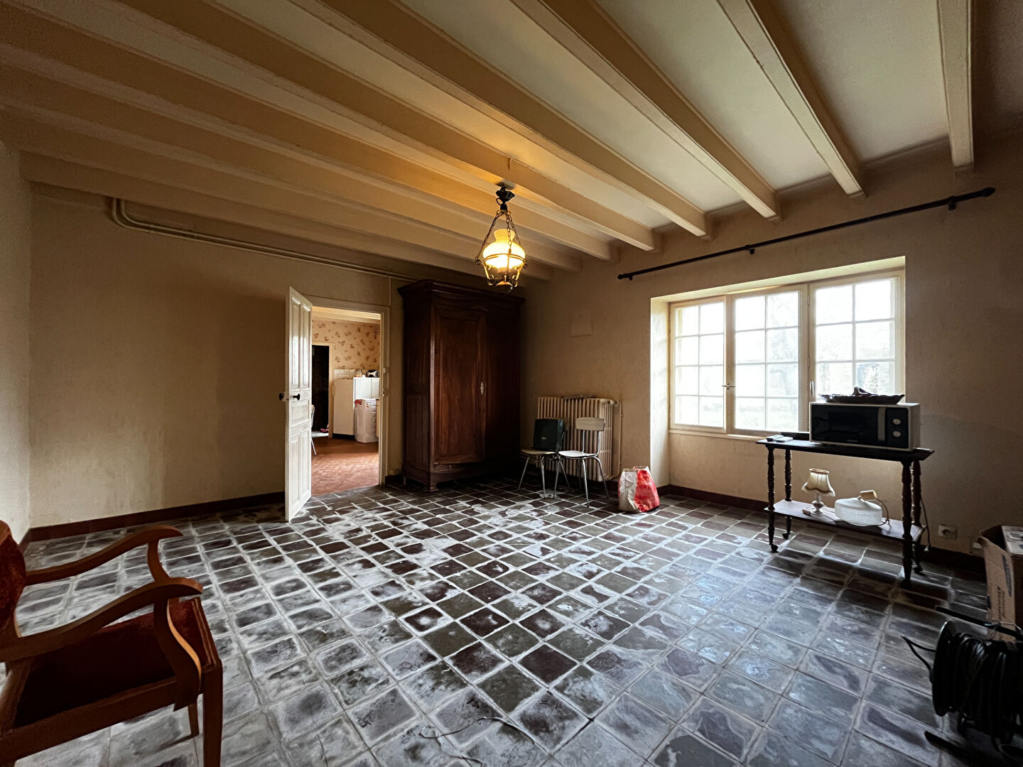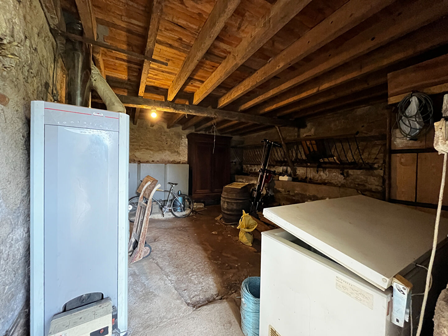 La maison, réisolée et raccordée au tout à l'égout, offre une cuisine, un séjour avec cheminée ouverte, une pièce attenante. L'ensemble peut s'ouvrir pour bénéficier d'une grande pièce de vie de plus de 55 m². En plus, vous trouverez deux chambres, un bureau, un wc et une salle de bains. Possibilité d'agrandir l'habitation sur la chaufferie avec son étage.
