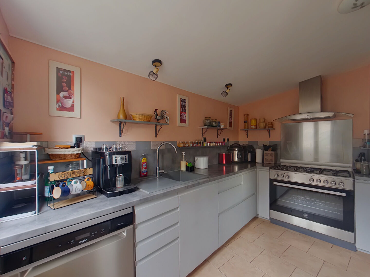 Au rez-de-chaussée, vous découvrirez une entrée avec un bureau aménagé sous l'escalier, un salon-séjour très lumineux, une salle d'eau avec WC, ainsi qu'une cuisine aménagée et équipée comprenant un piano de cuisson, un four et une hotte, le tout en excellent état.