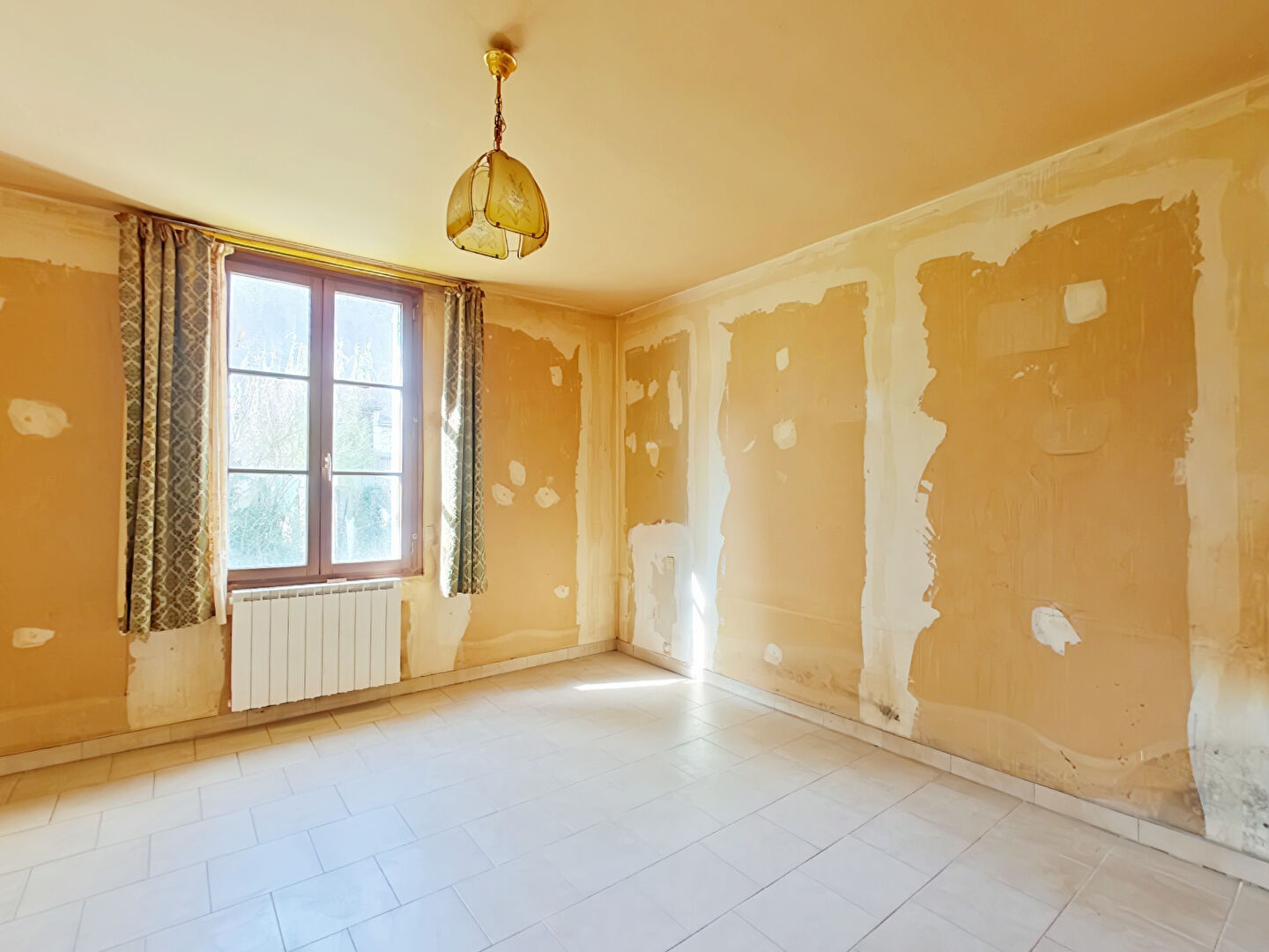 Maison de bourg à rafraichir de 148m2 comprenant, salon/séjour avec insert, cuisine indépendante, deux chambres spacieuses, grande salle d'eau de 7,5m2, wc séparé, pièce non chauffée. A l'étage, belle mezzanine, chambre et salle d'eau avec wc.