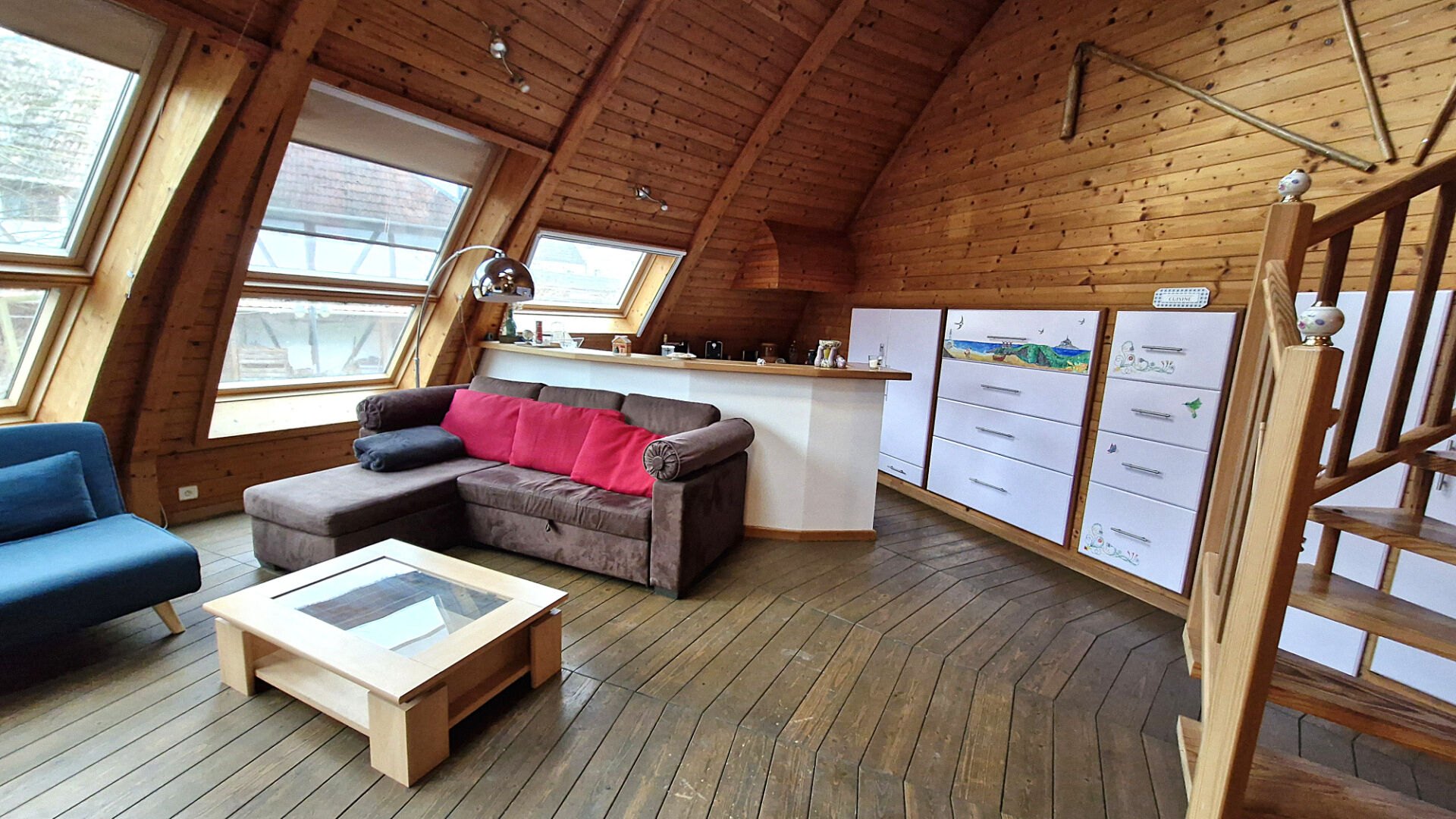 Ses 66 m² habitables (105 m² au sol) sont pensés jusqu'au moindre recoin : volumes généreux grâce à la forme dôme, lumière naturelle abondante par les ouvertures de toit, ambiance intérieure douce et enveloppante.