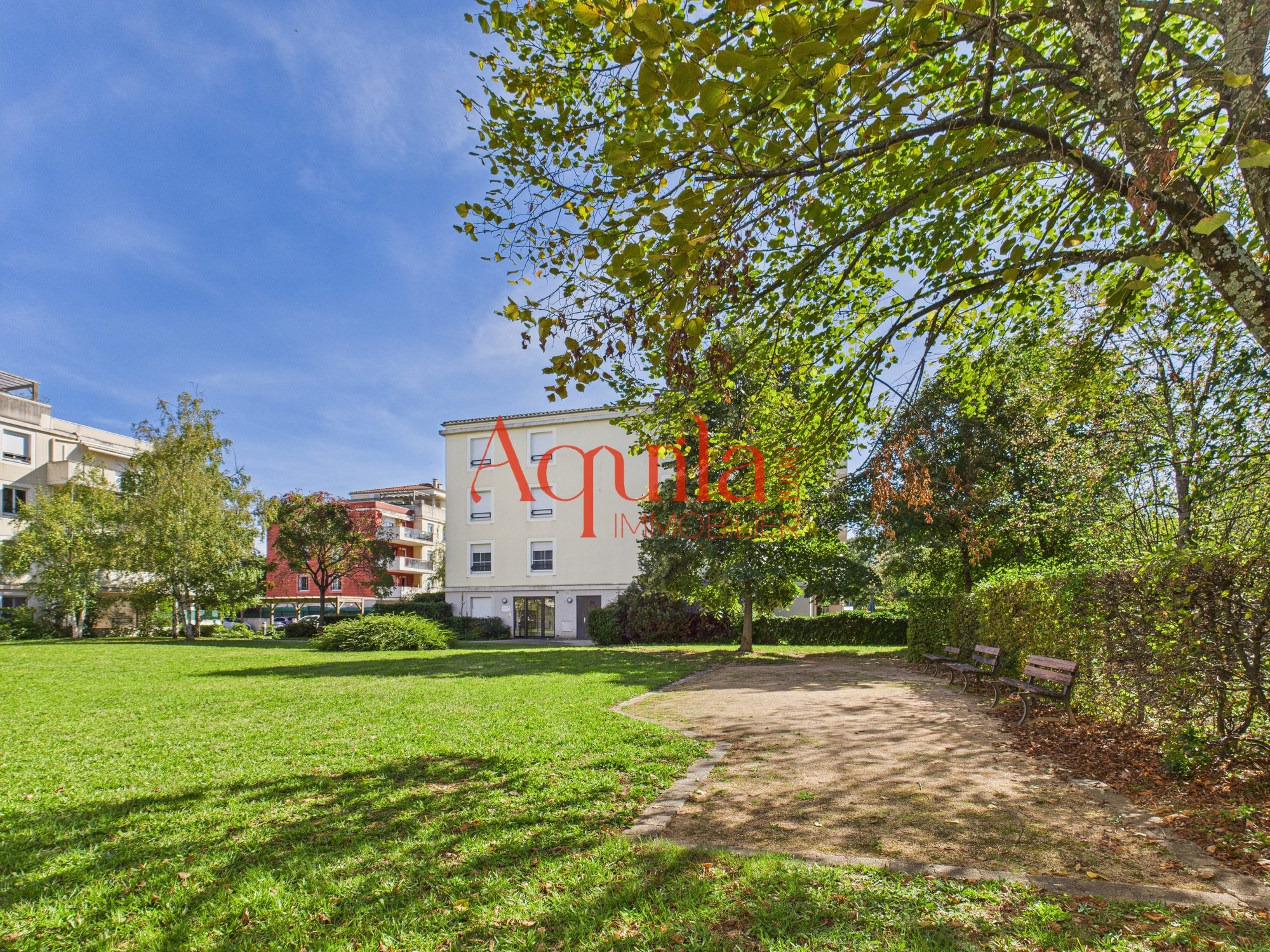 Espaces communs de qualité : piscine, verdure, terrain de pétanque