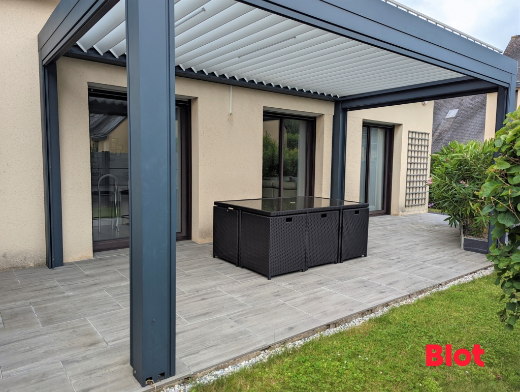 •Accès direct à une grande terrasse carrelée et complétée par une pergola bioclimatique (2021) de 15m2 + rideaux électriques pour profiter pleinement des extérieurs