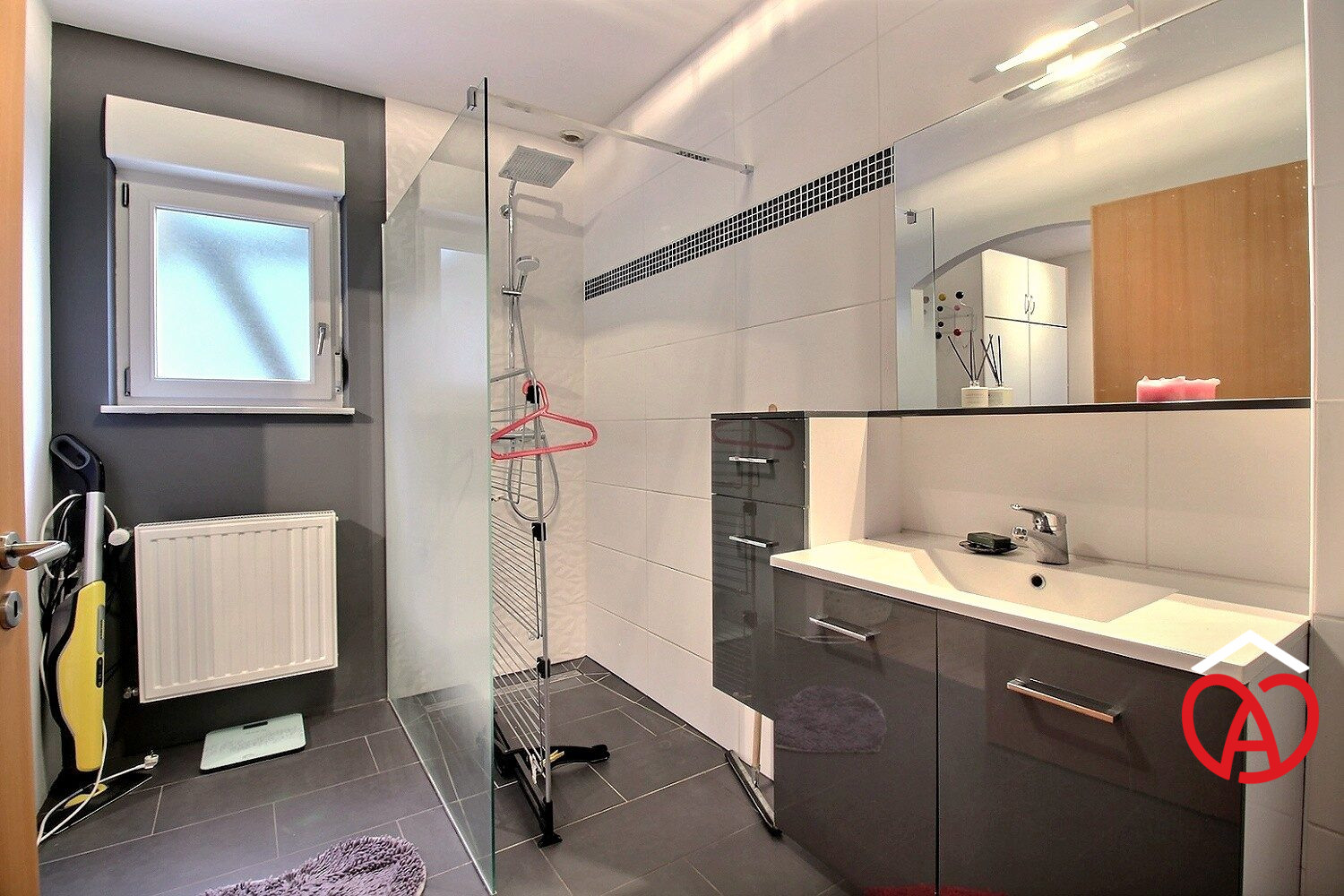 - Un grand palier avec espace de rangement,