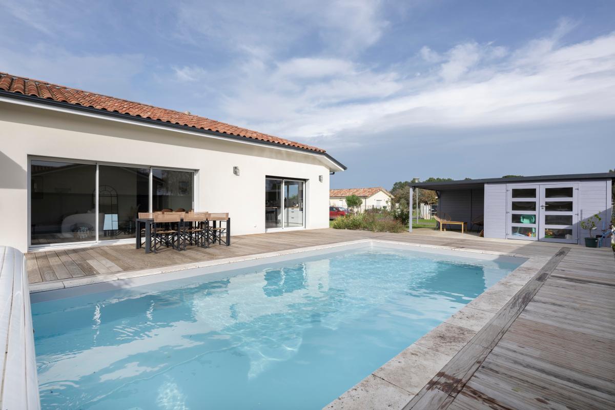 A l'extérieur, vous profiterez d'une piscine de 8*4m avec sa magnifique terrasse bois et son pool house ainsi qu'un jardin agréable et très bien entretenu.