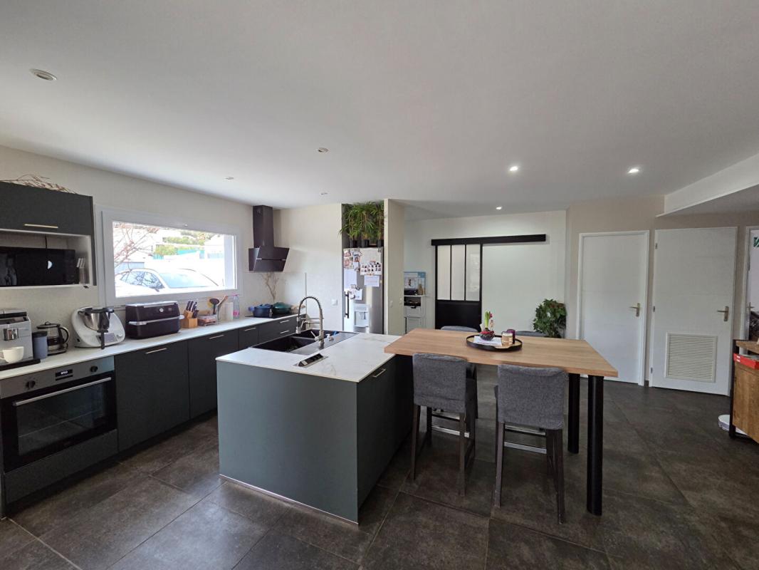 Elle se compose d'une entrée, d'une belle pièce de vie avec cuisine ouverte sur le séjour de 50m² , de trois chambres avec placards et dressing, d'une salle de bain équipée d'une douche, d'une baignoire et de WC, d'une salle de jeux, d'une buanderie ainsi que d'un WC indépendant.