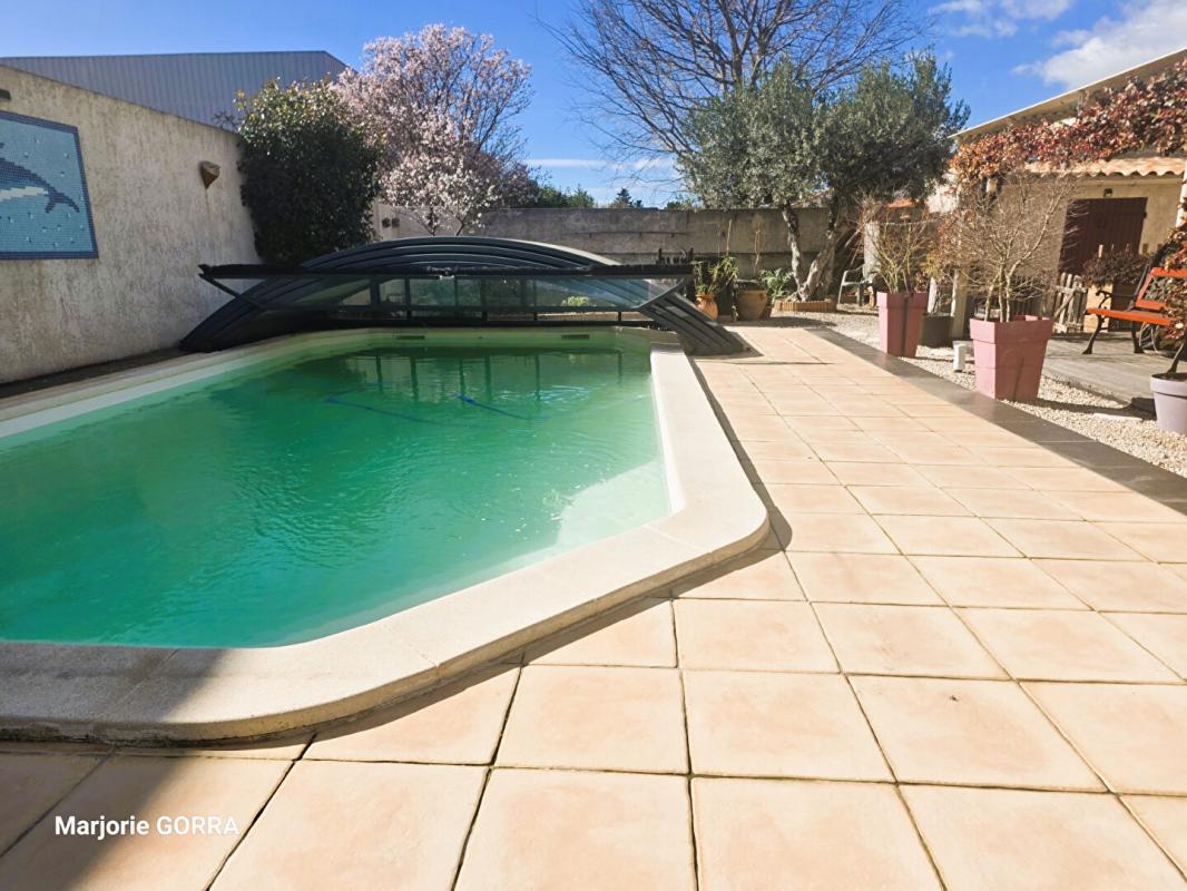 EN EXCLUSIVITE Marjorie GORRA vous propose cette villa T4 de plain-pied de 98 m² parfaitement entretenue, aux prestations de qualité et un excellent état général, à 5 min des commodités. ON POSE LES VALISES ! La maison se compose d'un hall d'entrée, une cuisine aménagée et équipée CUISINELLA, refaite en 2017, ouverte sur un salon séjour prolongé par une véranda fermée. L'ensemble forme un bel espace de vie de 52 m² convivial entièrement chauffé par un poêle à granulés et d'une climatisation réversible, offrant un confort optimal en toute saison. La partie nuit se compose de 3 chambres (12.20 m², 11.30 m² et 10.15 m²), une salle d'eau et un WC. A l'extérieur, vous profiterez, sur un terrain de 498 m² entièrement clos avec portail électrique, d'une piscine 8 X 4 avec son dôme pour profiter de 4 mois supplémentaires, une terrasse plein SUD avec sa pergola bioclimatique, une partie potager avec ses arbres fruitiers, un cabanon de 12 m² refait à neuf (toiture et isolation), une terrasse côté NORD avec son store neuf, un garage de 18 m².