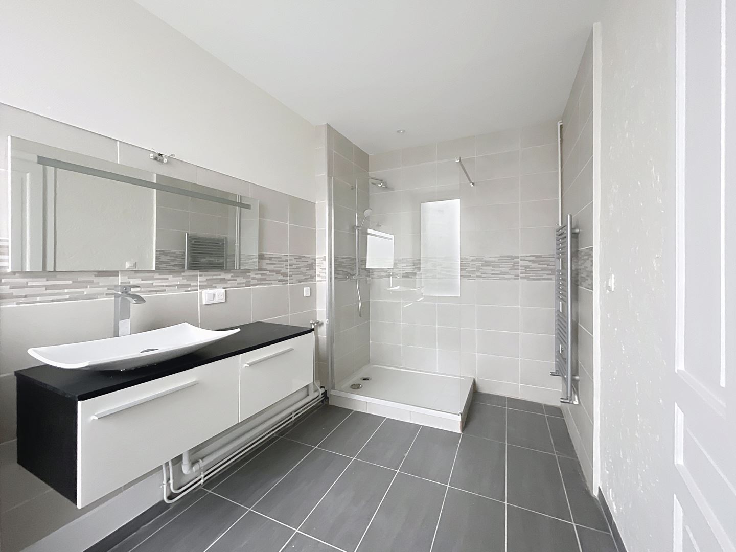 - Au 1er étage : un appartement entièrement rénové, de type F3 de 64,3m² avec un DPE en D, loué 490euros HC.