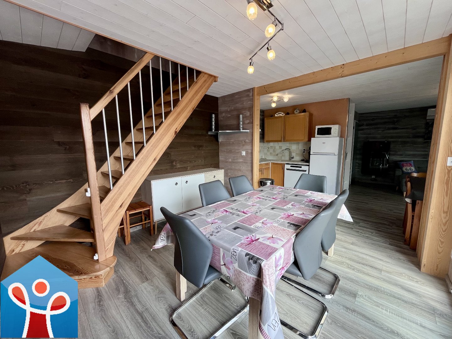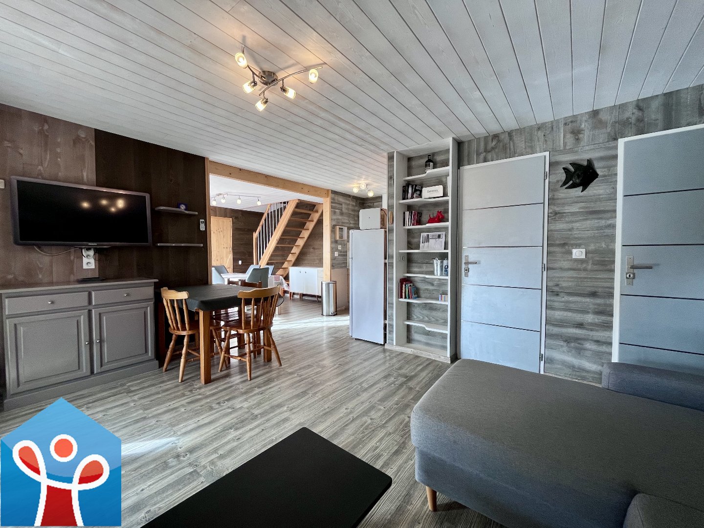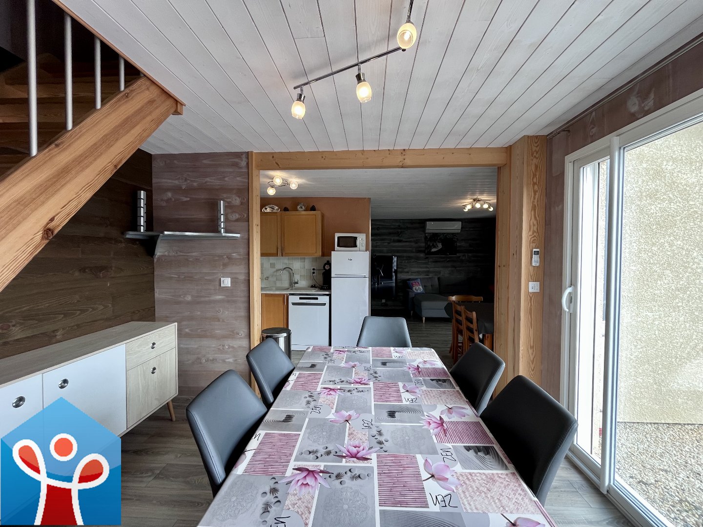 Le rez-de-chaussée propose une pièce de vie lumineuse et harmonieuse avec séjour, salon et cuisine américaine entièrement équipée, une salle d'eau, un wc et des espaces de rangement complètent ce niveau. À l'étage l'espace nuit se compose de trois chambres ainsi que d'une salle de bain avec wc.