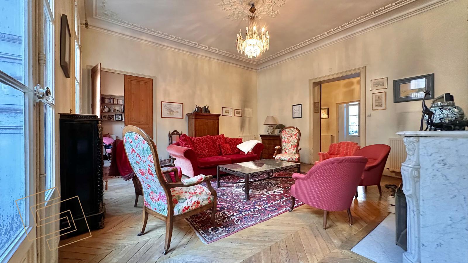 APPARTEMENT T5 BOURGEOIS 137 m² + JARDIN 100 m² - Le Cabinet de la Cité vous propose en avant-première cet appartement situé au premier étage d'un immeuble bourgeois, doté d'une entrée élégante. Ce vaste appartement bourgeois de 137 m² séduit par ses beaux volumes, son authenticité, son charme intemporel et ses cheminées ornées.