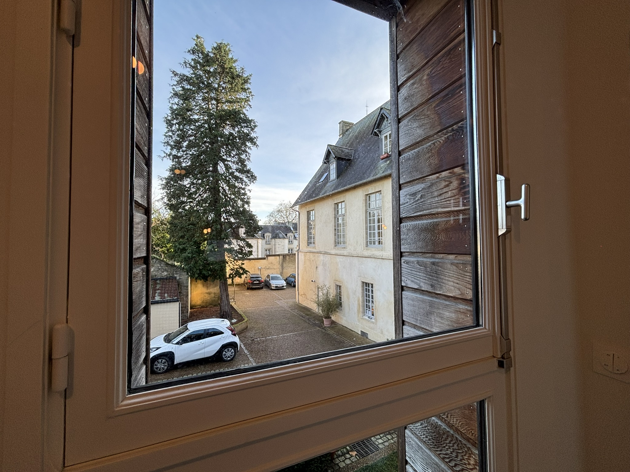 Magnifique appartement de trois pièces principales situé au coeur du centre historique de Bayeux (14400), dans un ancien hôtel particulier rénové.