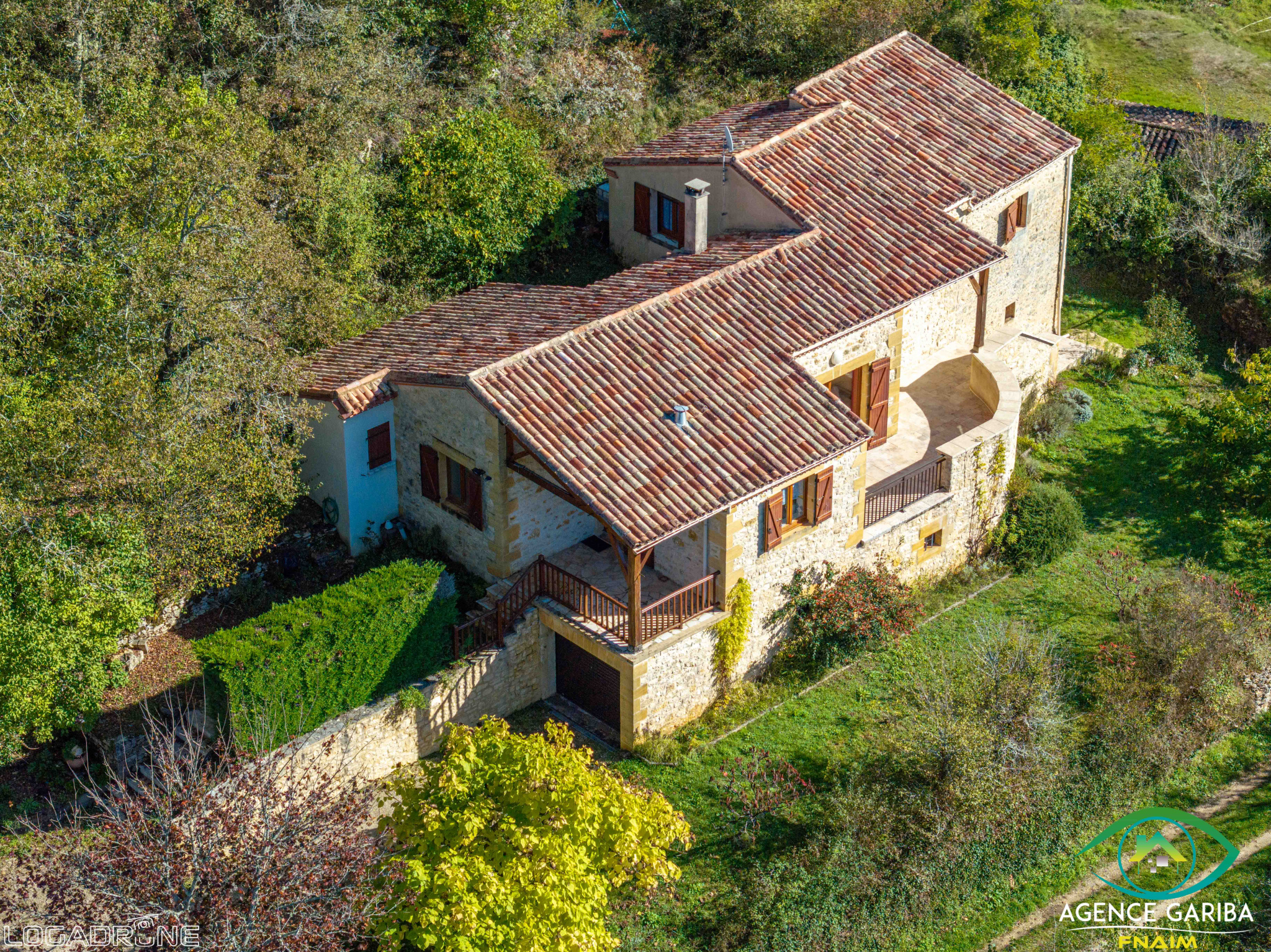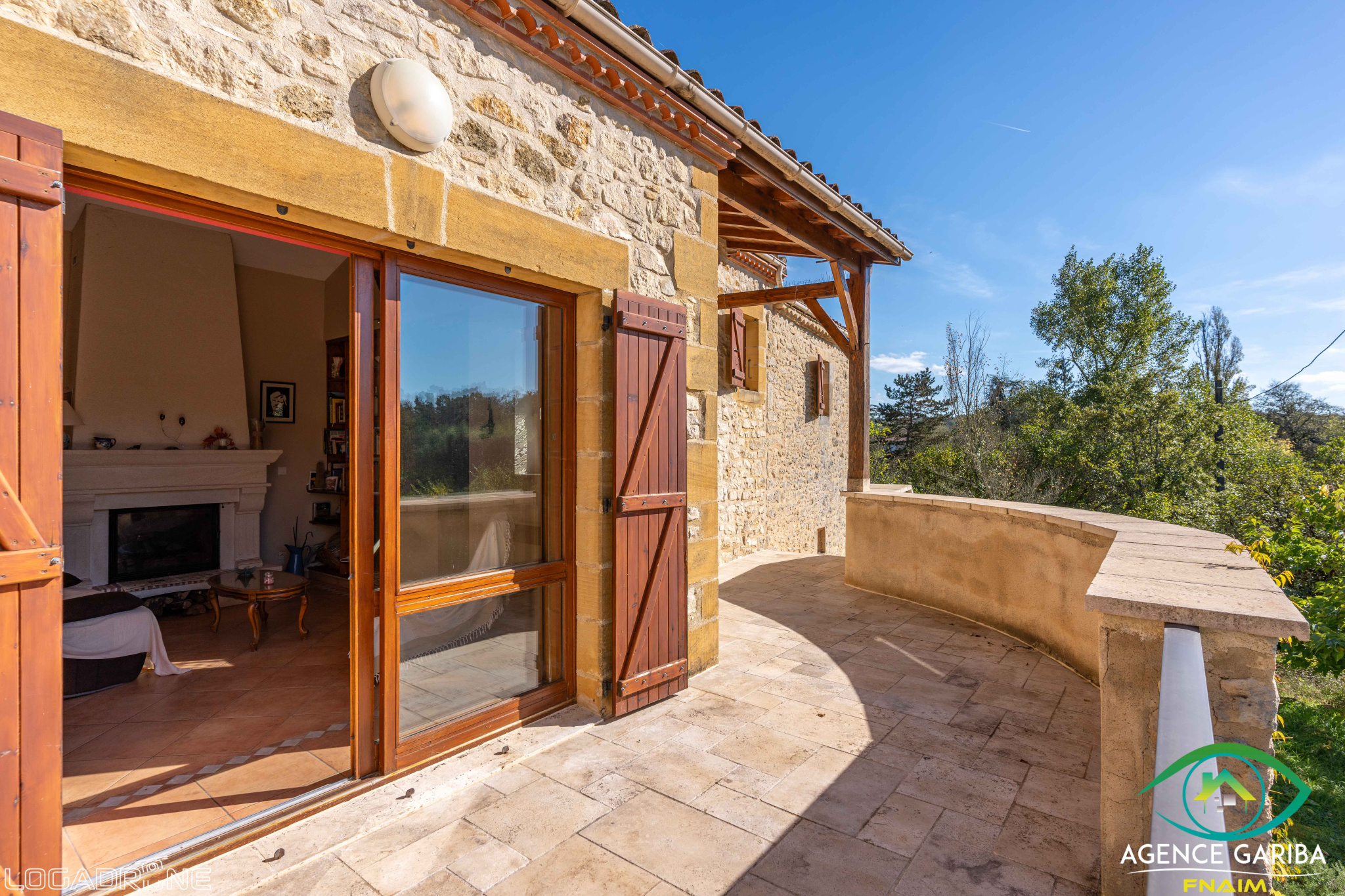 Idéalement située à la sortie du village tous commerces de Lacapelle Biron au bord d'un verdoyant chemin de randonnée, venez découvrir cette jolie maison en pierre adossée à la colline. La vie dans la maison s'articule autour d'un séjour salon sortant sur une belle terrasse Sud Ouest et de sa cuisine ouverte. Les 4 chambres (ou 3 chambres et un bureau) sont réparties en 2 coins nuit à chaque extrémité de la pièce de vie et sur des niveaux différents, salle de bain et salle d'eau, 2 wc, un indépendant, l'autre dans la salle d'eau. Un escalier confortable descend dans la partie sous sol dans laquelle se trouve un garage, un cellier et une cave.Sous la chambre côté Sud une cave voutée.