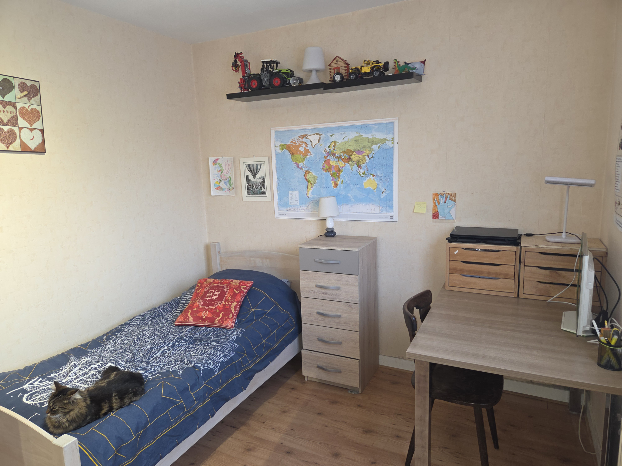 D'une surface habitable de 109 m2, elle se compose au rez-de-chaussée d'un spacieux garage, d'une buanderie et d'une chambre confortable. Au premier étage, vous trouverez une cuisine ouverte sur un vaste salon-séjour, une salle de bains ainsi que des toilettes indépendantes. Le deuxième étage accueille deux chambres supplémentaires et un second WC.