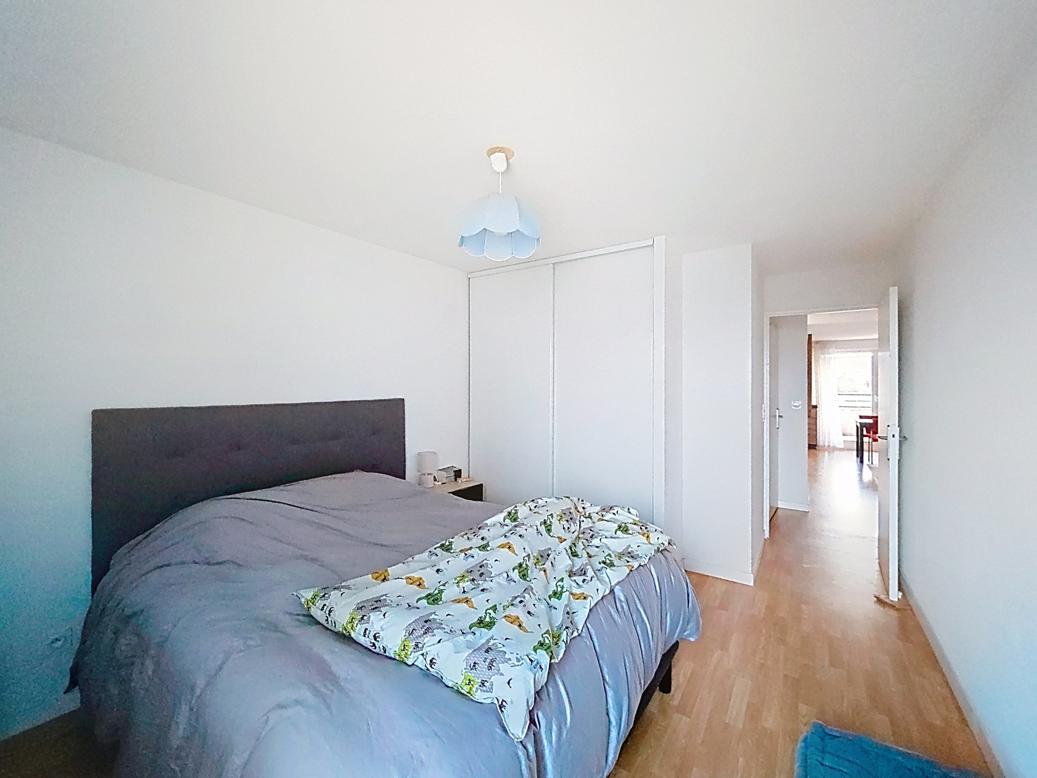L'appartement dispose d'une entrée avec placard, cuisine équipée ouverte sur séjour, salle d'eau avec WC, chambre avec placard, alcôve (coin bureau) avec placard.