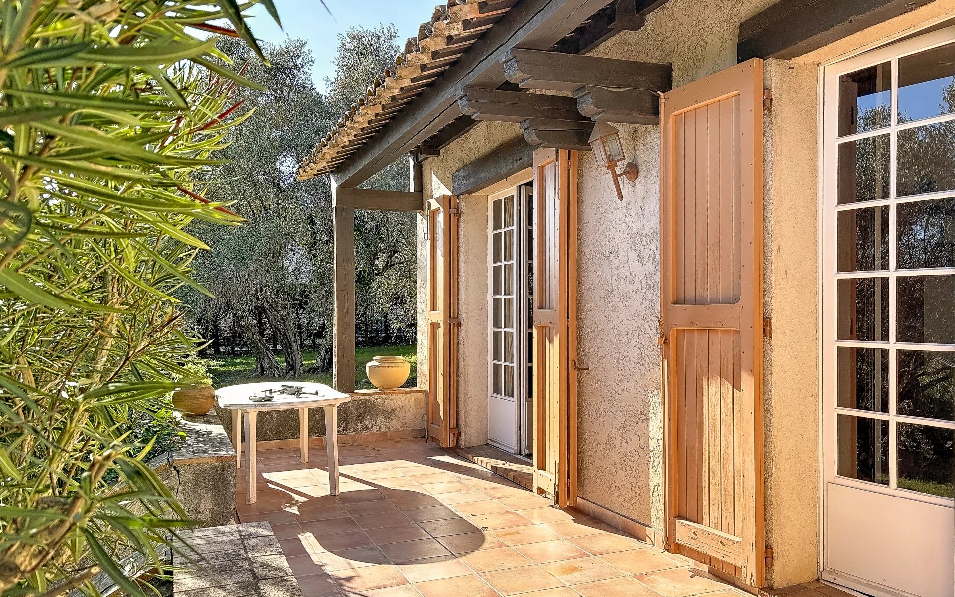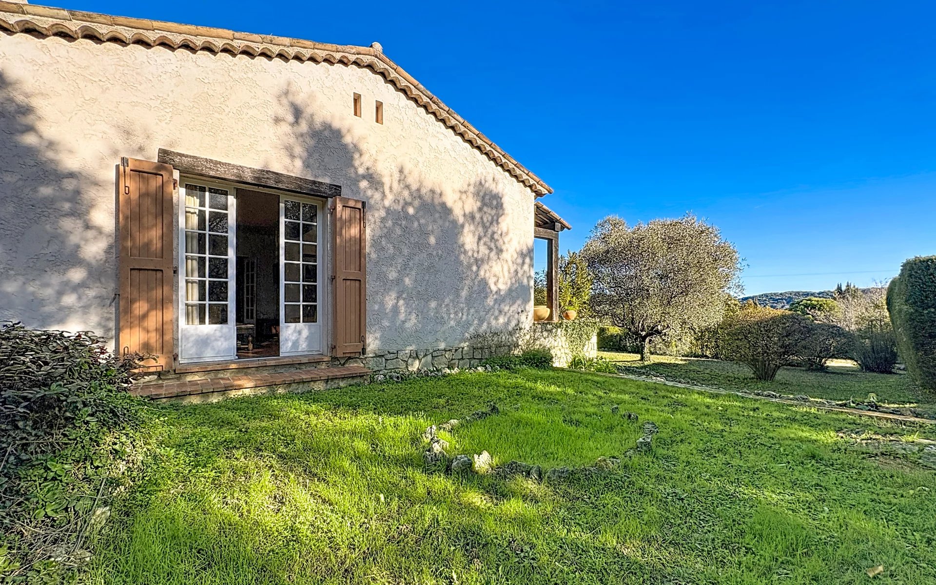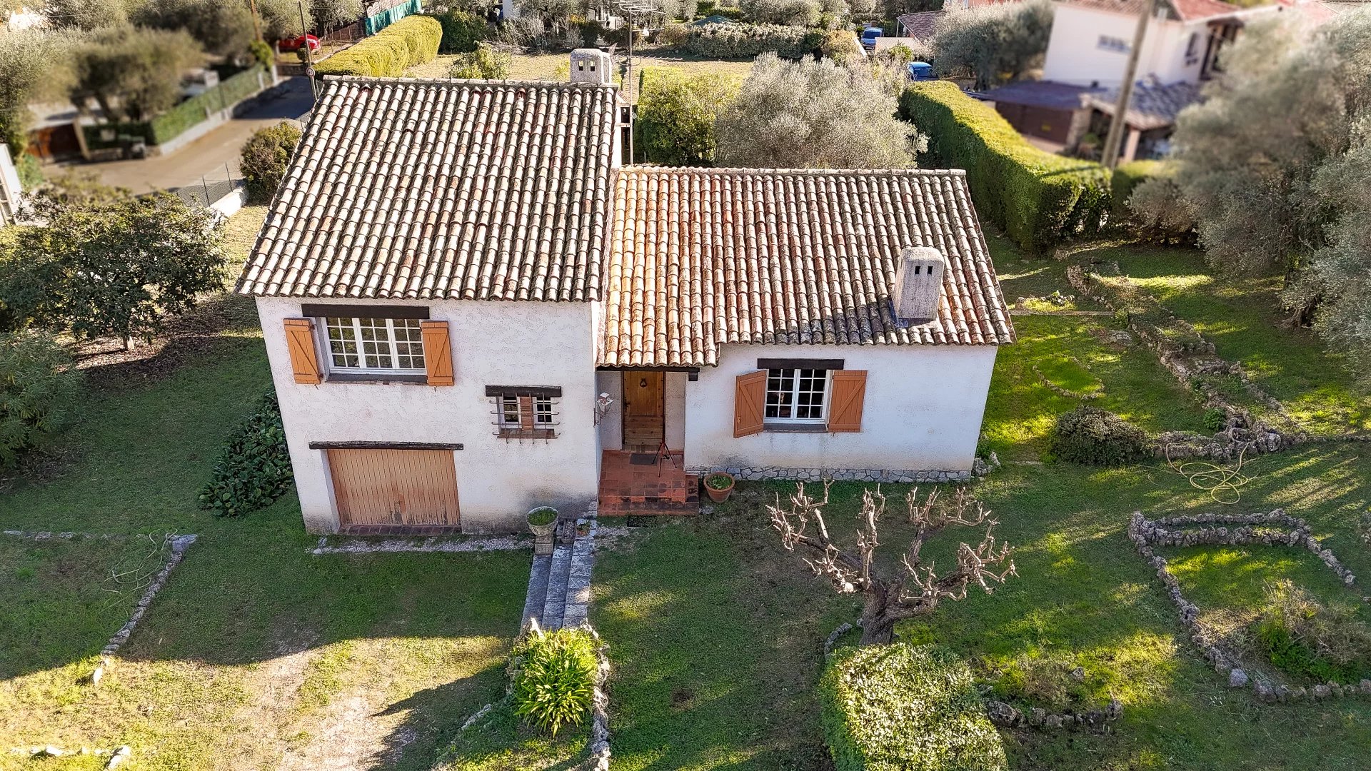 Elle est implantée sur un terrain plat de plus de 2 000 m², agrémenté d’une très belle oliveraie, avec un accès facile. La construction, datée de 1972, est de facture traditionnelle, saine et solide, et repose sur vide sanitaire.