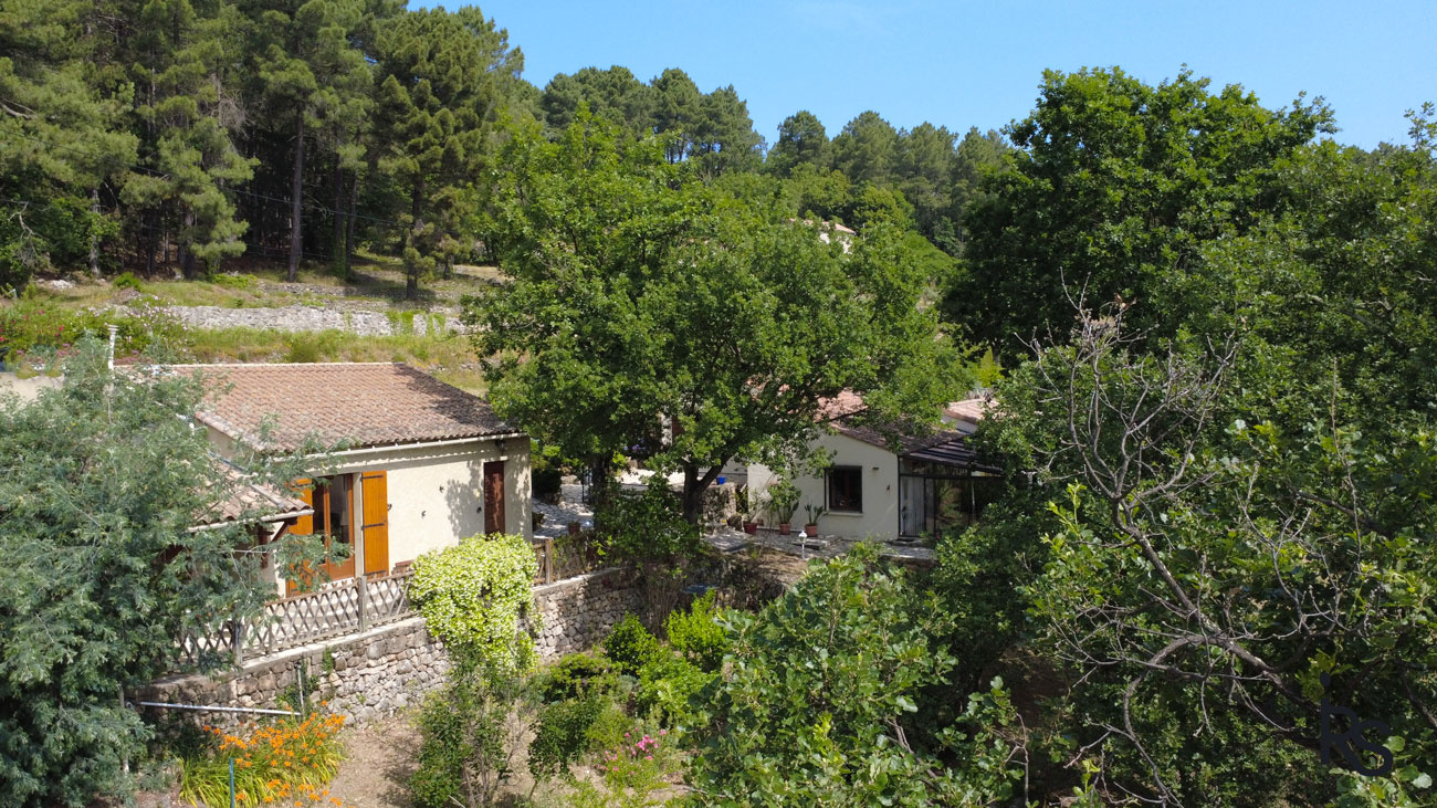 Un ensemble de deux maisons de 149 m2 et 34 m2 avec 4995 m2 de jardin au calme, avec une belle vue dégagée et une piscine hors-sol, hors village.La première maison comprend une véranda-salon d'hiver, un séjour ouvert sur la cuisine, un petit salon ou d'une chambre d'appoint, trois chambres, deux salles d'eau et une buanderie. La deuxième maison se compose d'une cuisine dinatoire, d'un salon, d'une chambre en mezzanine, d'une salle d'eau avec W.C et d'un atelier. Pompe à chaleur air-air, cheminée avec foyer fermé et convecteurs dans la petite maison. Deux fosses septiques.