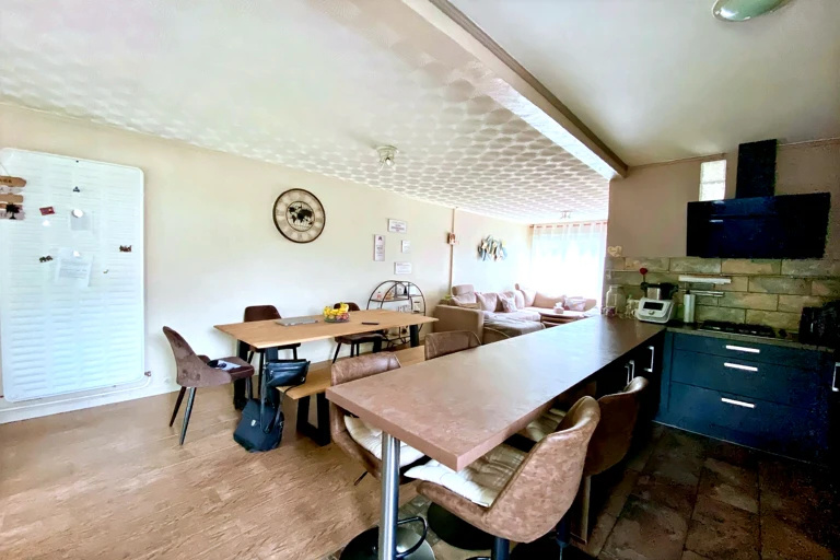 TIGRE IMMOBILIER a le plaisir de vous présenter cette superbe maison entièrement rénovée, offrant de généreux volumes, une distribution idéale et un cadre de vie recherché, à proximité immédiate de toutes les commodités. Dès l'entrée, vous serez séduit par un hall avec rangements intégrés, menant vers un bel espace de vie convivial composé d'un salon / salle à manger chaleureux, complété par un second salon, parfait pour un espace détente, bureau ou salle TV. La cuisine américaine entièrement équipée, ouverte sur les pièces de vie, renforce l'atmosphère moderne et fonctionnelle de la maison. Un WC indépendant complète ce niveau. À l'étage, un vaste palier dessert trois belles chambres, un dressing, une buanderie ainsi qu'une salle de bains pensée pour le confort quotidien de toute la famille. Les prestations se poursuivent avec une cave, un garage pouvant accueillir deux véhicules et un agréable jardin, idéal pour profiter de moments de détente en toute intimité préservée.- Maison clé en main posez vos meubles !- Volumes, confort et fonctionnalité réunis- Idéale pour une famille en quête de sérénitéPour tout renseignement complémentaire ou pour organiser une visite, contactez votre conseillère en immobilier Stéphanie LOCOCCIOLO au 06 14 06 36 64. Les informations relatives aux risques éventuels sont consultables sur le site georisques.gouv.fr. TIGRE IMMOBILIER MAUBEUGE JEUMONT www.tigre-immobilier.fr - 0327649216 ou 0327582626
