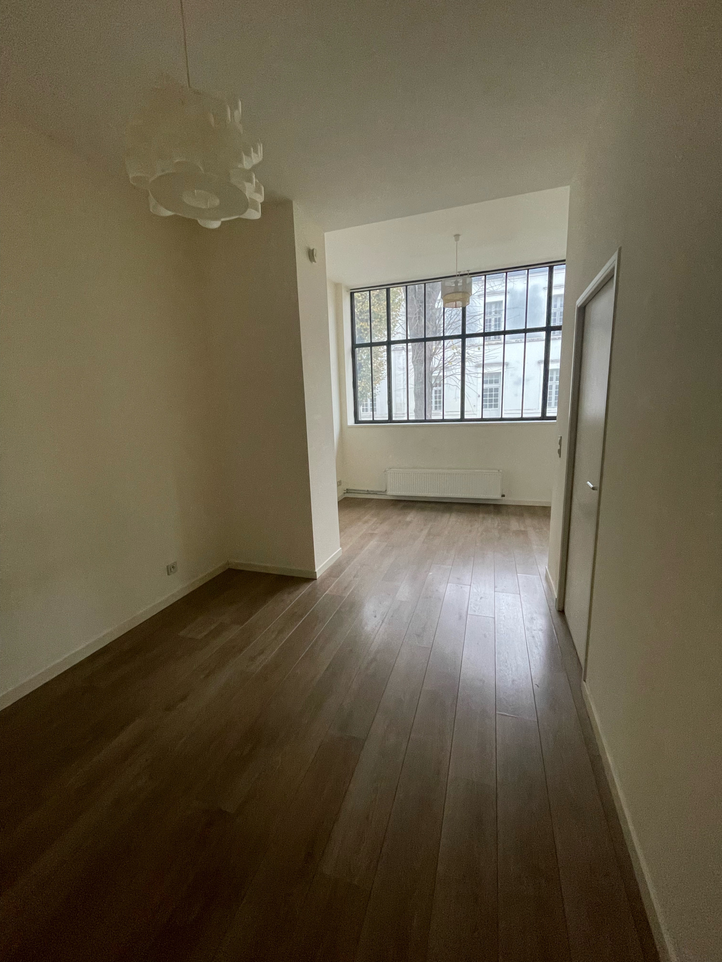 Appartement lumineux grâce à ses grandes fenêtres style verrière, en double vitrage.