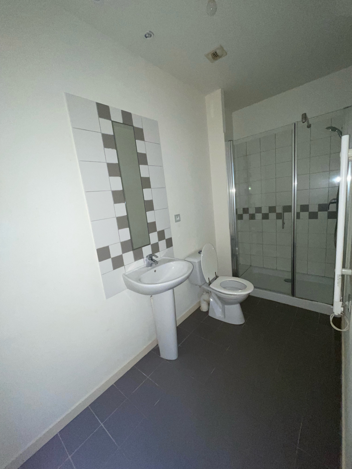 Le bien se compose ainsi : séjour avec cuisine ouverte, aménagée et équipée, chambre avec bureau, salle de douche avec WC.