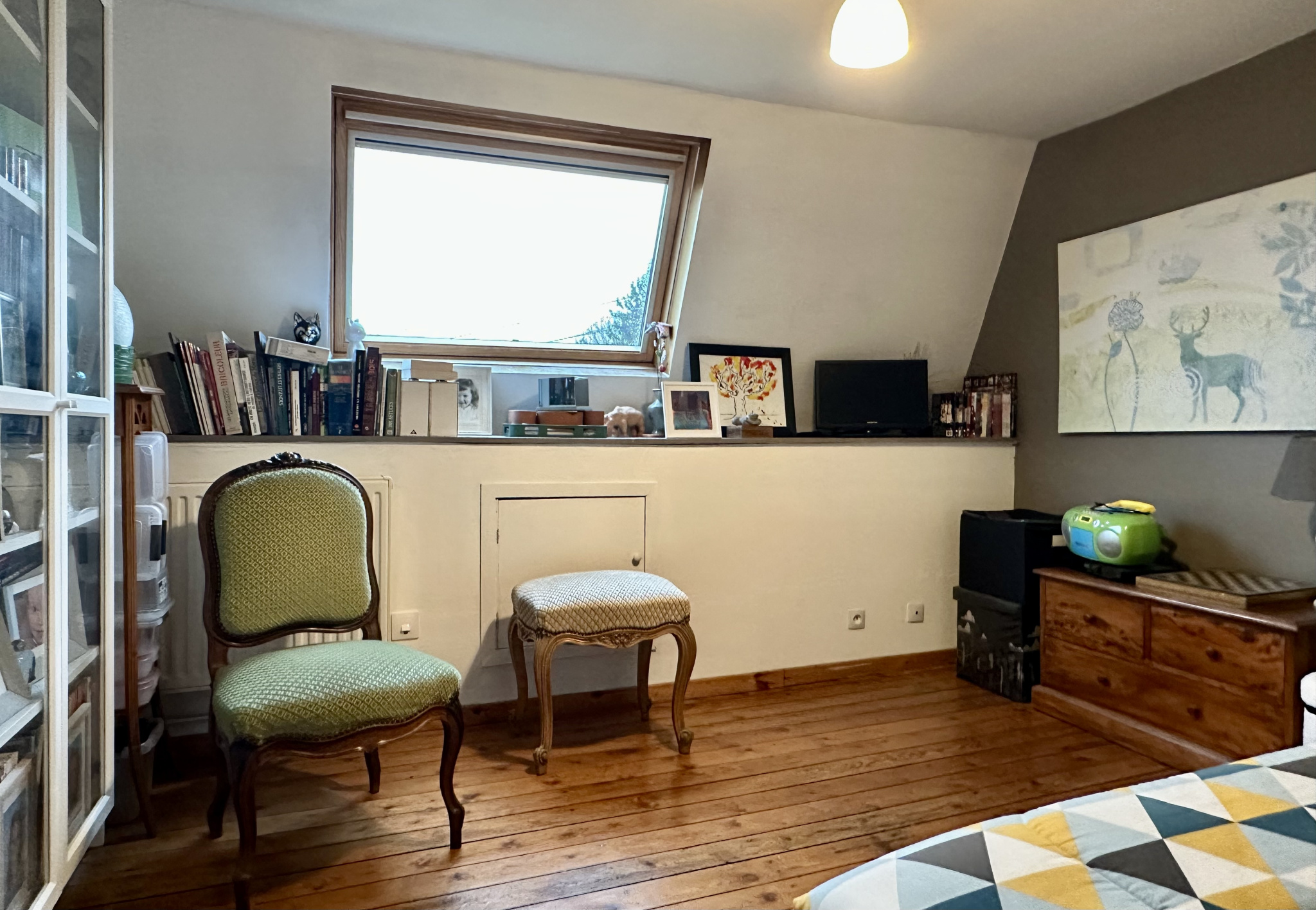 L'étage distribue trois chambres d'approximativement 11, 12 et 16 m2 ainsi qu'un bureau ou dressing ou chambre bébé d'environ 8,50 m2, une salle de douche et des wc.