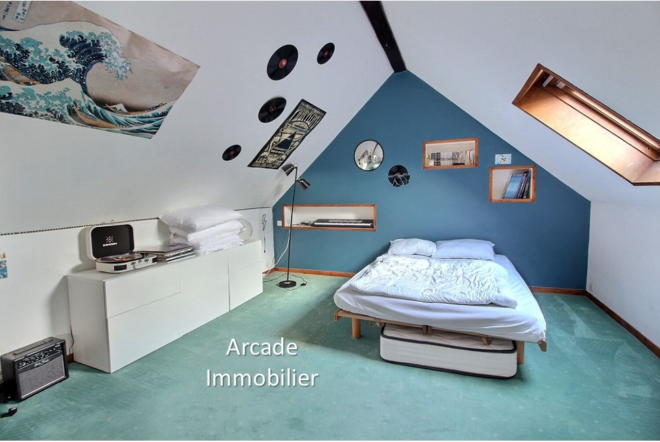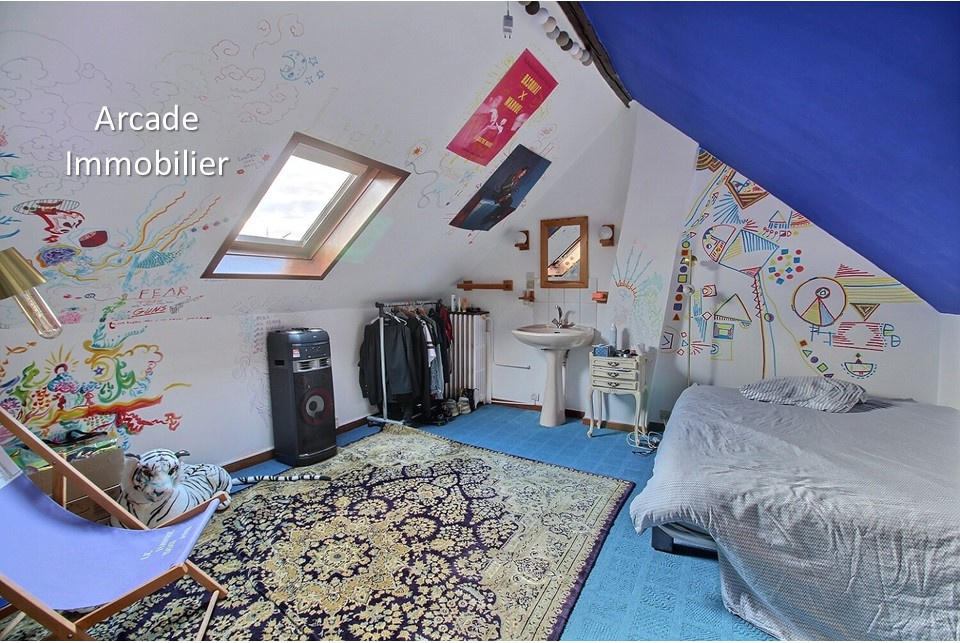 Située sur un agréable terrain de 490 m2, maison de caractère habitable de plain-pied vous séduira par ses volumes et sa fonctionnalité. Au rez-de-chaussée : entrée, séjour-salon lumineux de 31 m2 sud, grande cuisine avec coin repas de 24 m2, arrière-cuisine, une chambre de 15 m2, salle de douches et wc. À l'étage : un bureau idéal pour un espace télétravail ainsi que deux grandes chambres mansardées. Grand jardin au calme. Garage. Les informations sur les risques auxquels ce bien est exposé sont disponibles sur le site Géorisques : www.georisques.gouv.fr.