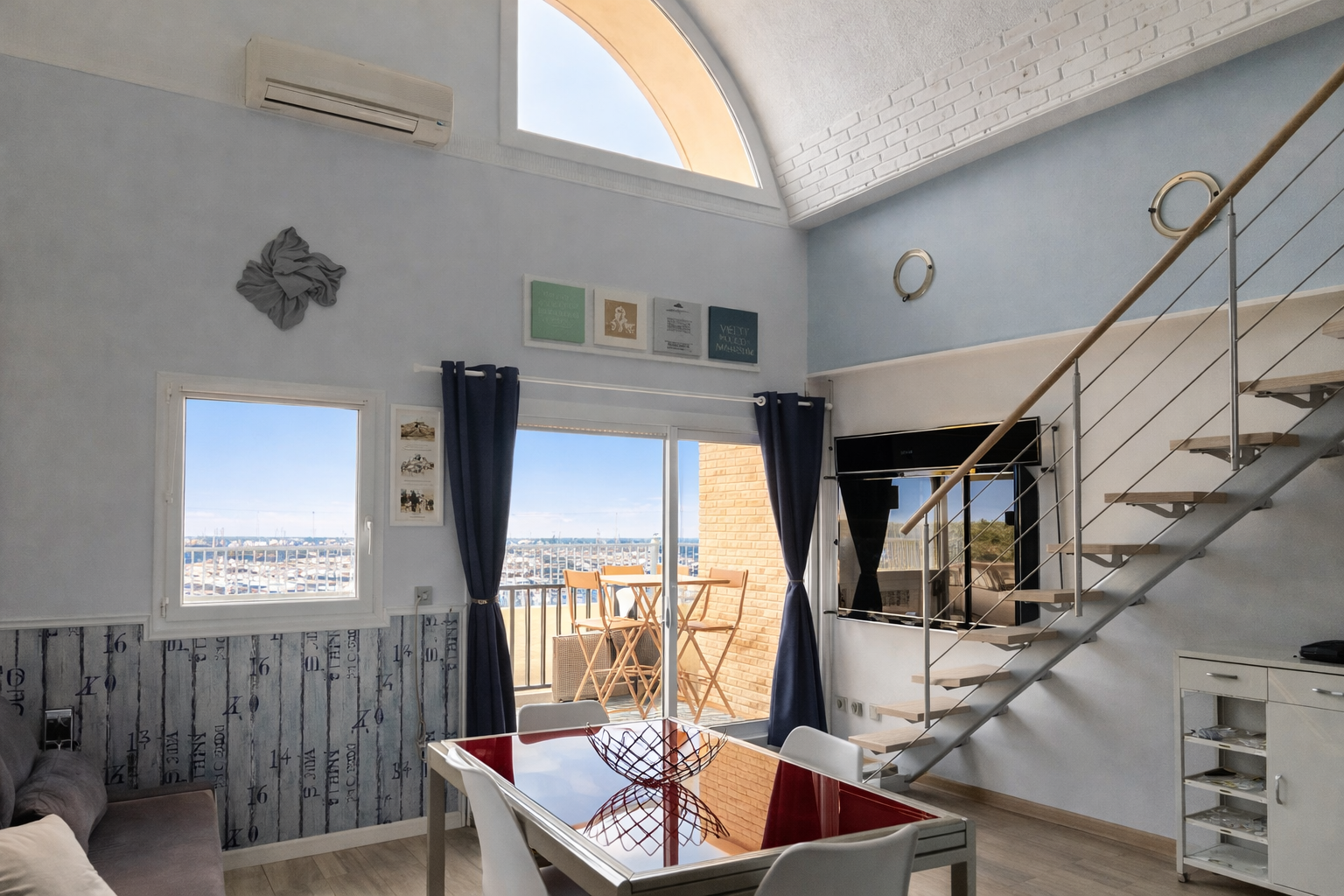 GRUISSAN RIVE DROITE- Coup de coeur assuré pour ce très bel appartement T2 en duplex au 4ème et dernier étage d'une résidence prisée, fermée et sécurisée avec piscines. Belle pièce de vie lumineuse composée d'un séjour avec cuisine ouverte, le tout donnant sur une terrasse avec vue imprenable et panoramique sur la mer et le port sans aucun vis-à-vis! Idéalement exposé sud-est, vous bénéficiez d'un ensoleillement toute la journée. Une chambre confortable en mezzanine d'environ 15 m2 offre également une vue port, avec possibilité de créer une seconde chambre. Aucun travaux à prévoir, parfait pour résidence secondaire ou investissement locatif, qui allie confort, bel emplacement et prestations de qualité. Place de parking privative dans la résidence. Pour les amoureux de la mer et de la tranquilité ce bien est fait pour vous!