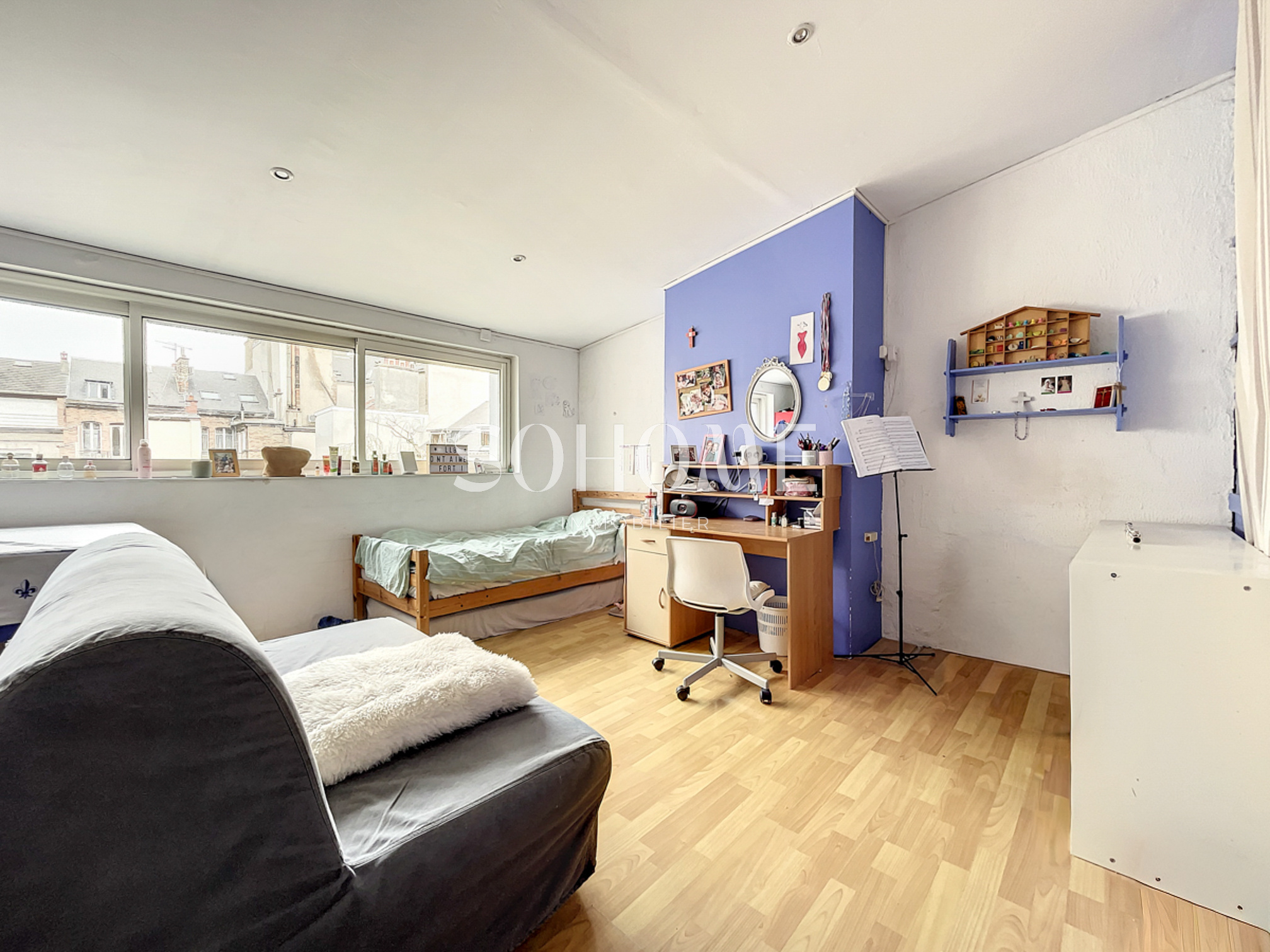 Particulier remois d'environ 186 m2 composée au rez de chaussée d'une pièce de vie avec cuisine donnant sur la cour de 50 m2 sans vis à vis et d'un joli salon. Àu premier étage, se trouvent 2 chambres, une salle de bains et une salle de douches.